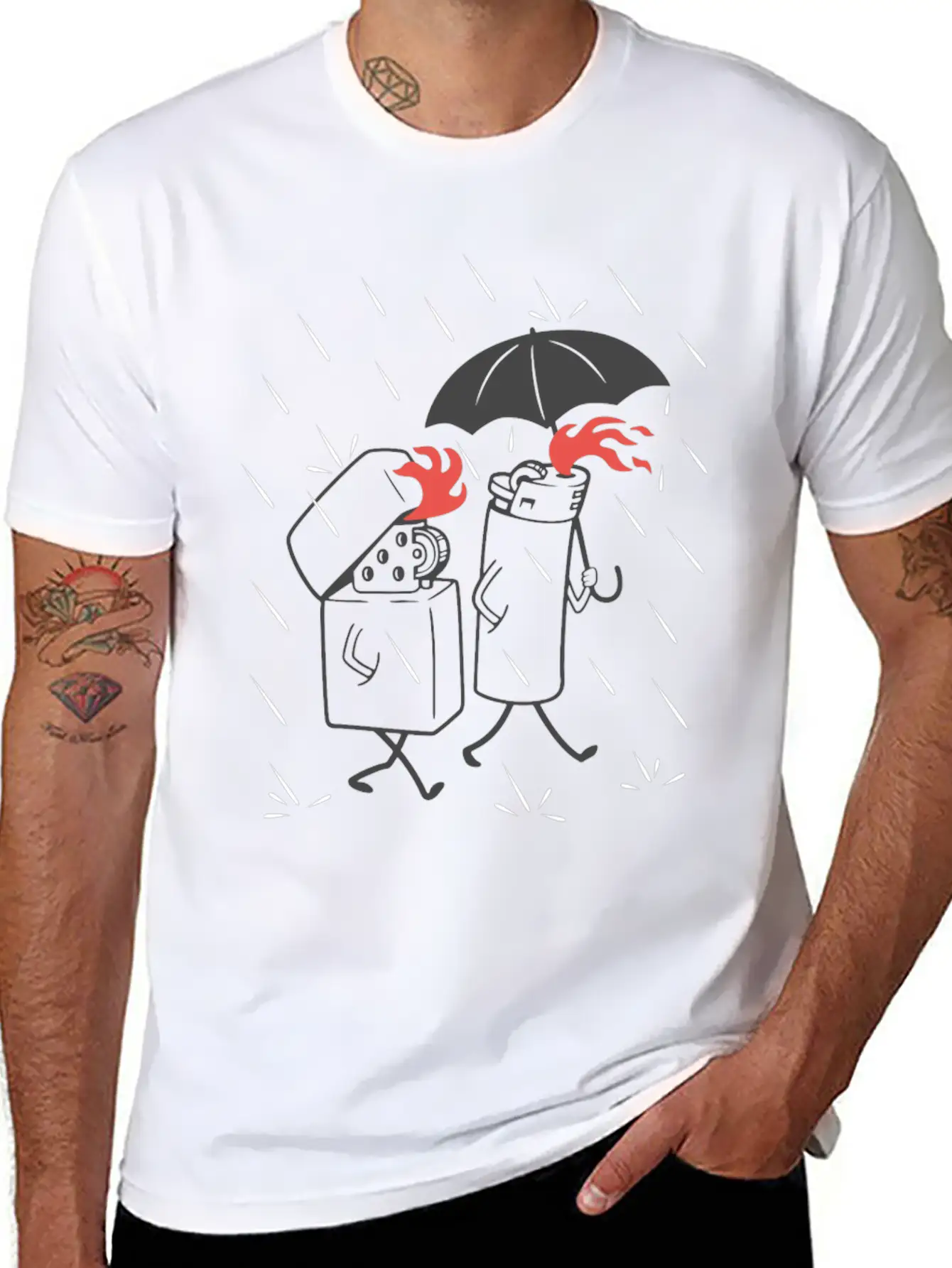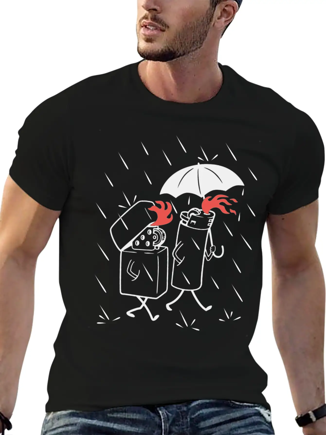 Add a hint of Lighters In The Rain to your wardrobe with this minimalist graphic tee. Lightweight and perfect for all seasons.