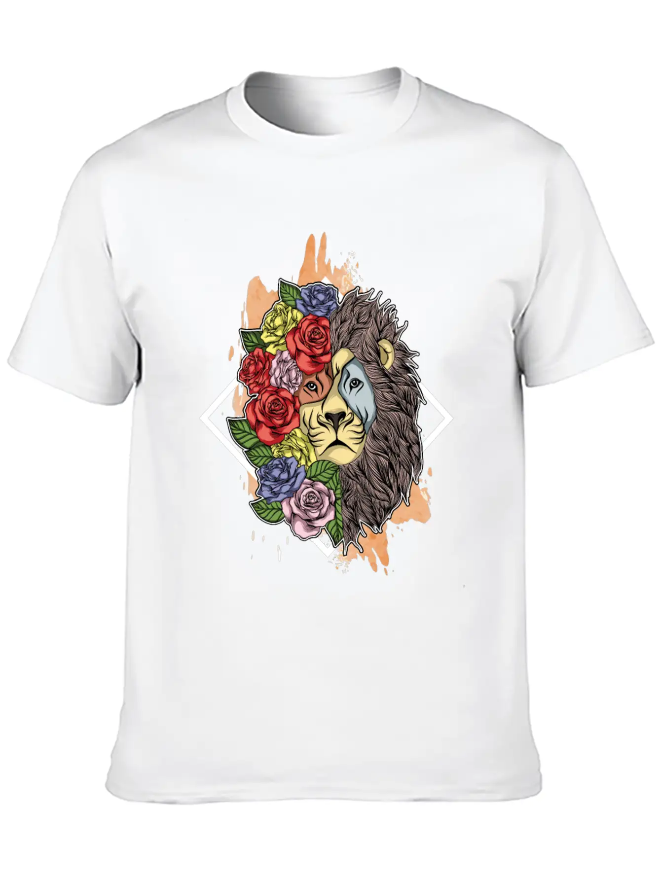 Lion With Roses Classic Crew Neck Graphic Tee – Everyday Minimal Look