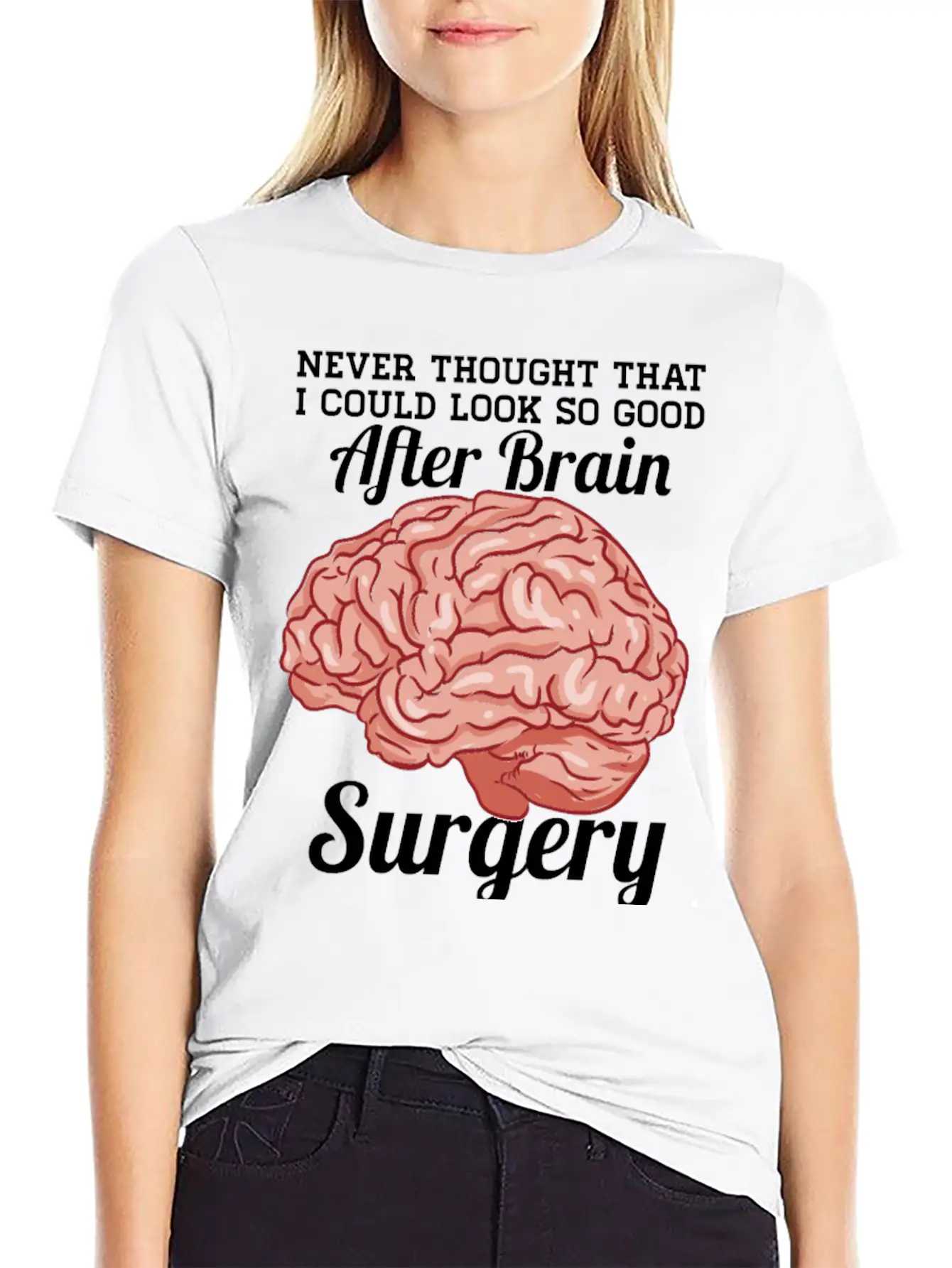 Designed with a bold yet minimal Look Good After Brain Surgery print, this tee brings subtle personality to your wardrobe. Lightweight and comfortable.