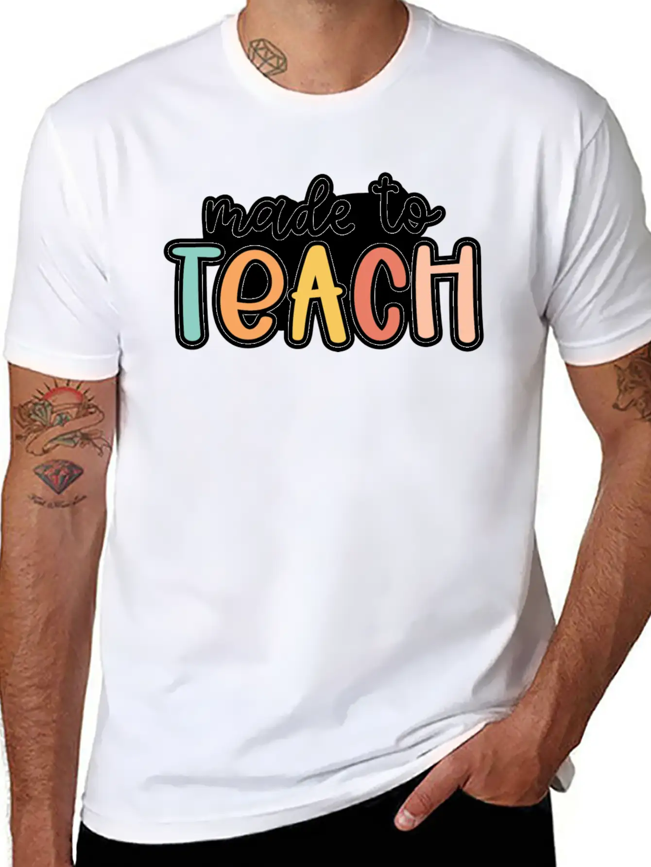 Simple, stylish, and themed with the Made to Teach, this T-shirt is perfect for adding personality to your outfit. Soft cotton touch.
