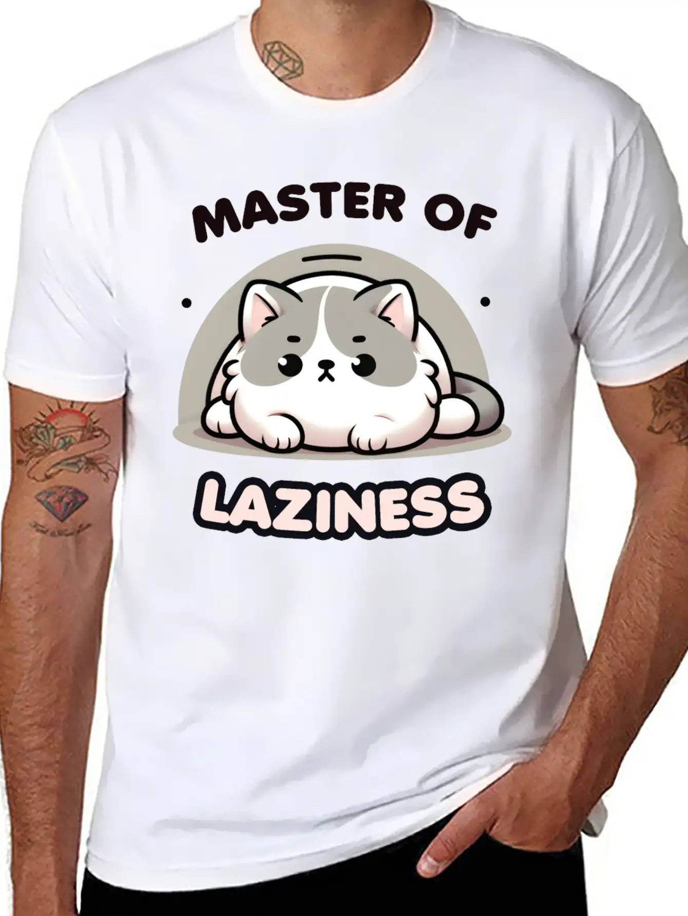 Master Of Laziness Funny Lazy Cat Stylish Everyday T-Shirt – Unisex Basic Cotton Tee