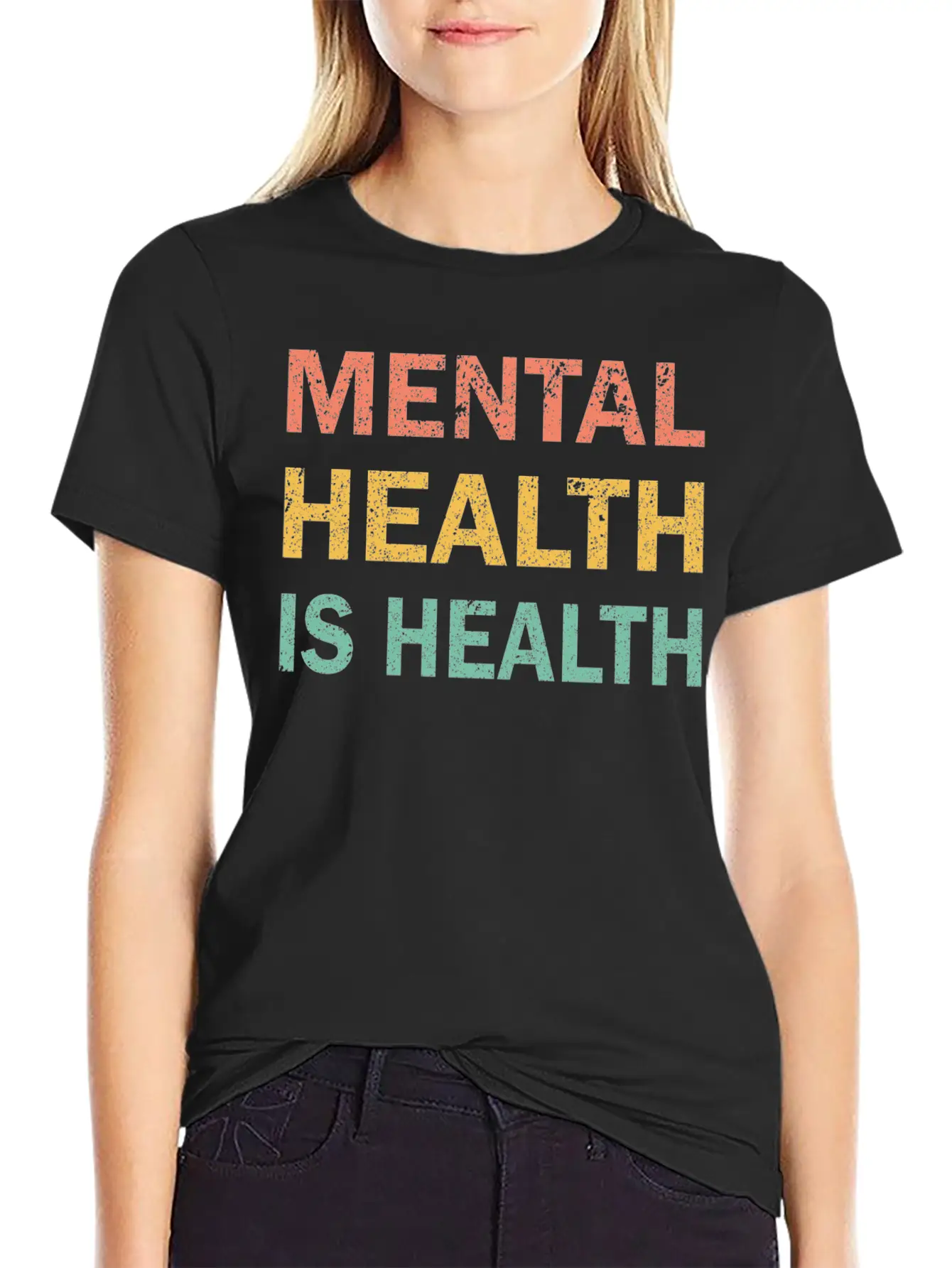 The Mental Health Is Health Awareness Retro design adds character to this everyday tee. Easy to pair with jeans, shorts, or layered looks.