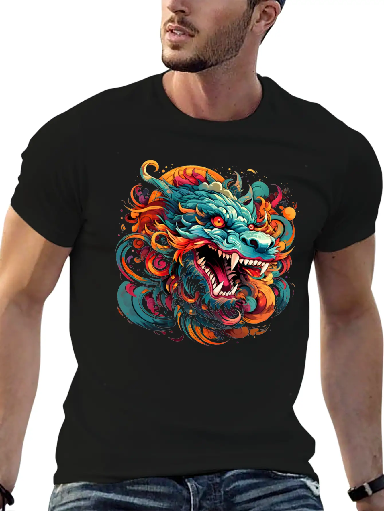 Modern Oriental Dragon Majesty Basic Graphic T-Shirt – Daily Comfort In Soft Cotton