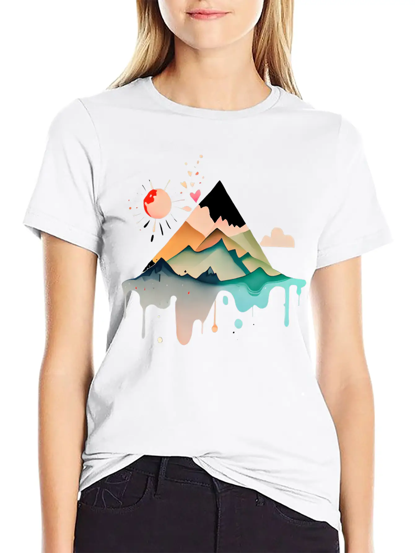 Mountain Paint Splatter Design Simple Everyday Graphic Tee – Lightweight Summer Wear