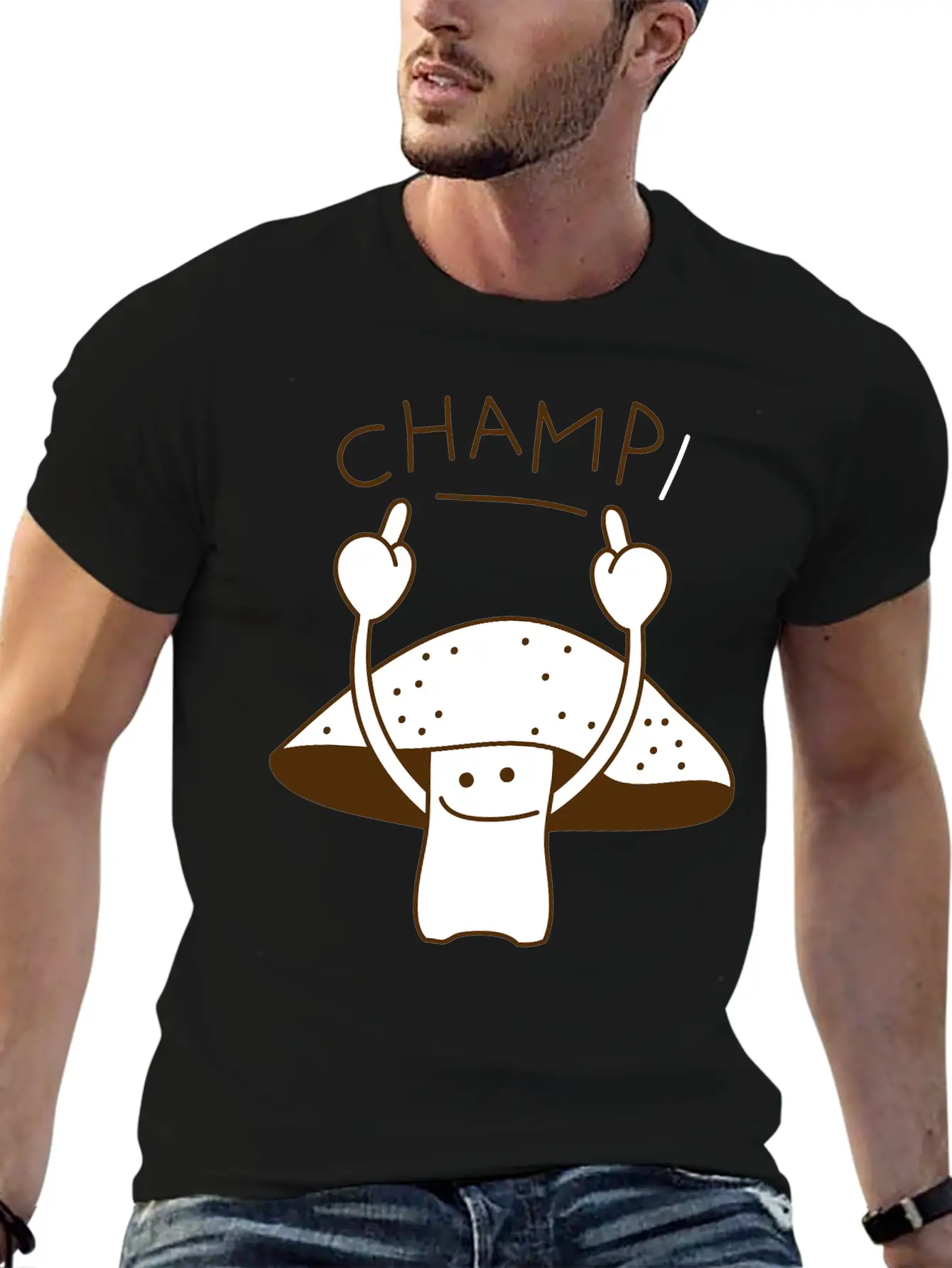 This graphic T-shirt blends everyday wearability with a distinct Mushroom as champion design. Made from soft, breathable cotton.