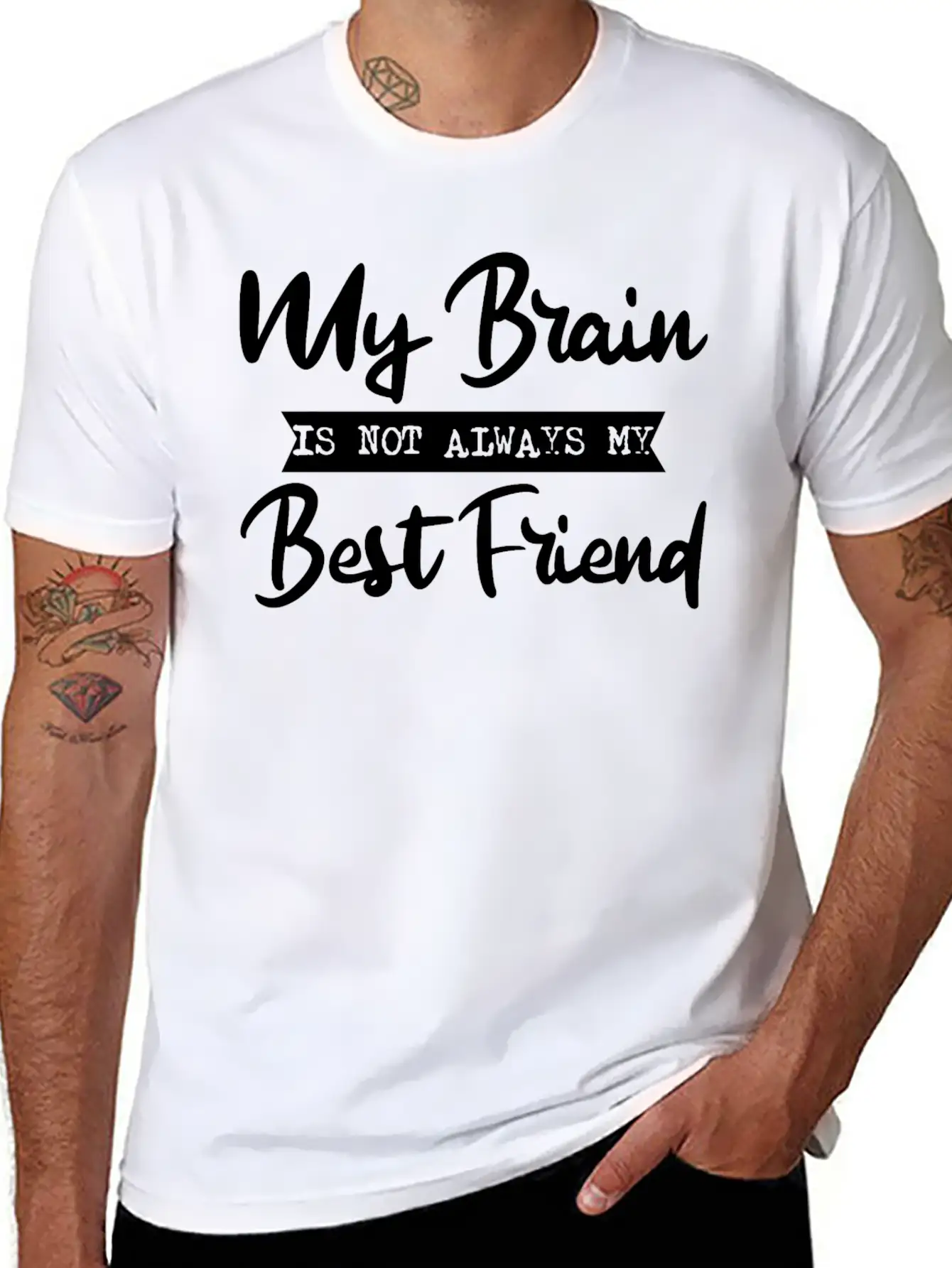 The My Brain Is Not Always My Best Friend 2 design adds character to this everyday tee. Easy to pair with jeans, shorts, or layered looks.