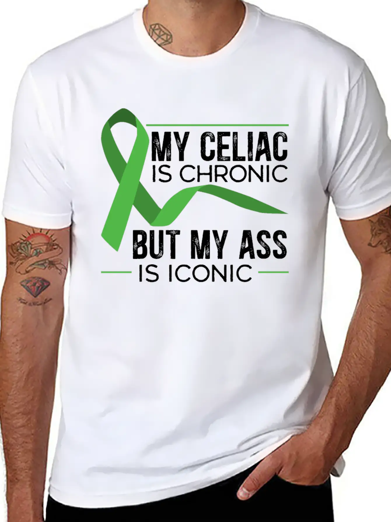 My Celiac Is Chronic But My Ass Is Iconic Gluten Simple Everyday Graphic Tee – Lightweight Summer Wear