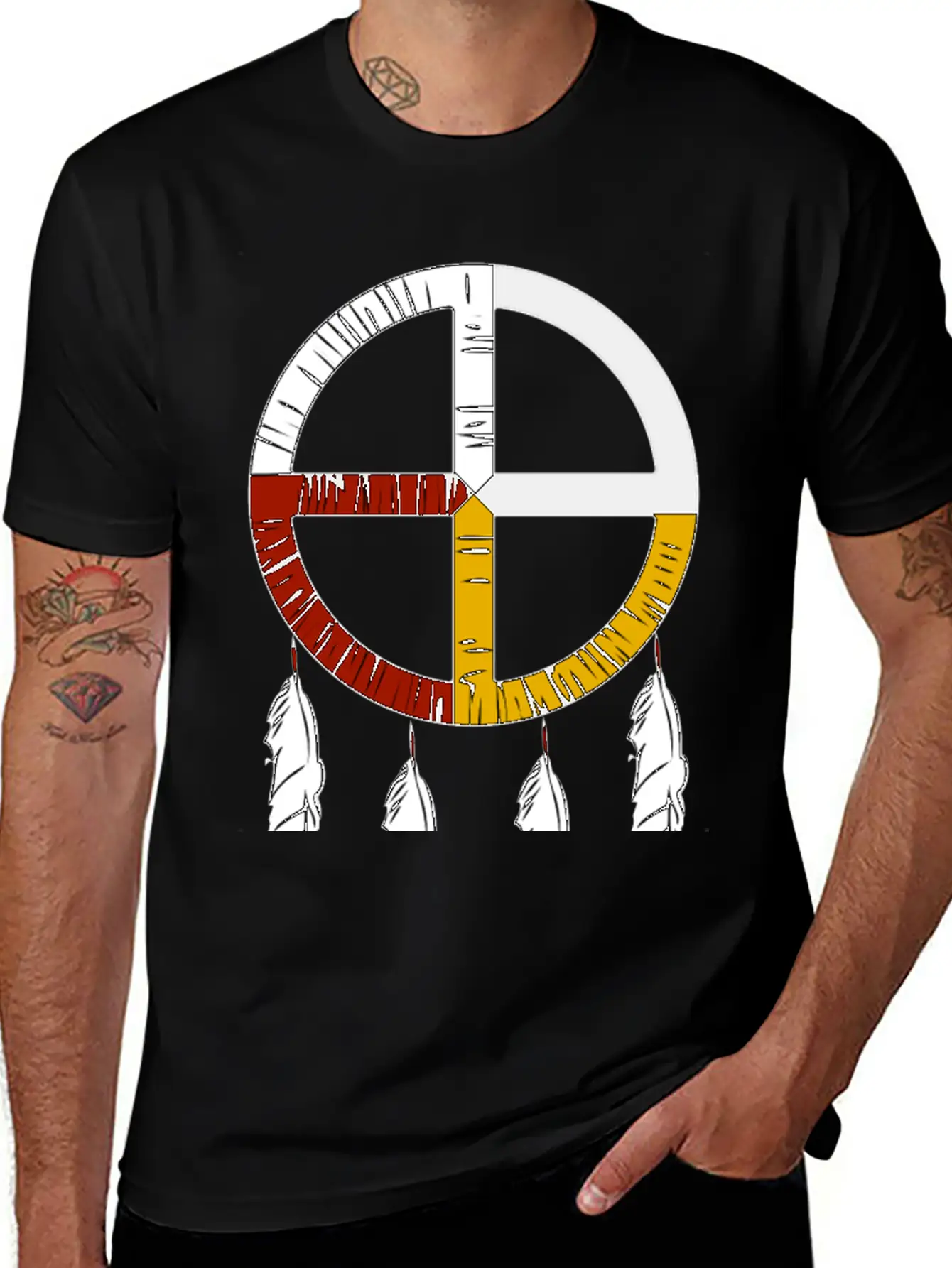 The NATIVE AMERICAN MEDICINE design adds character to this everyday tee. Easy to pair with jeans, shorts, or layered looks.