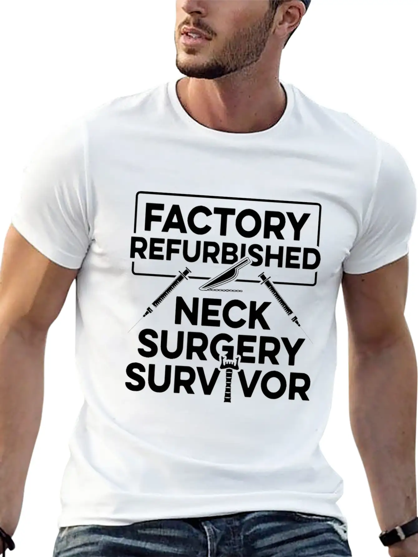 Neck Surgery Off Work Implant Survivor Recovery Stylish Everyday T-Shirt – Unisex Basic Cotton Tee