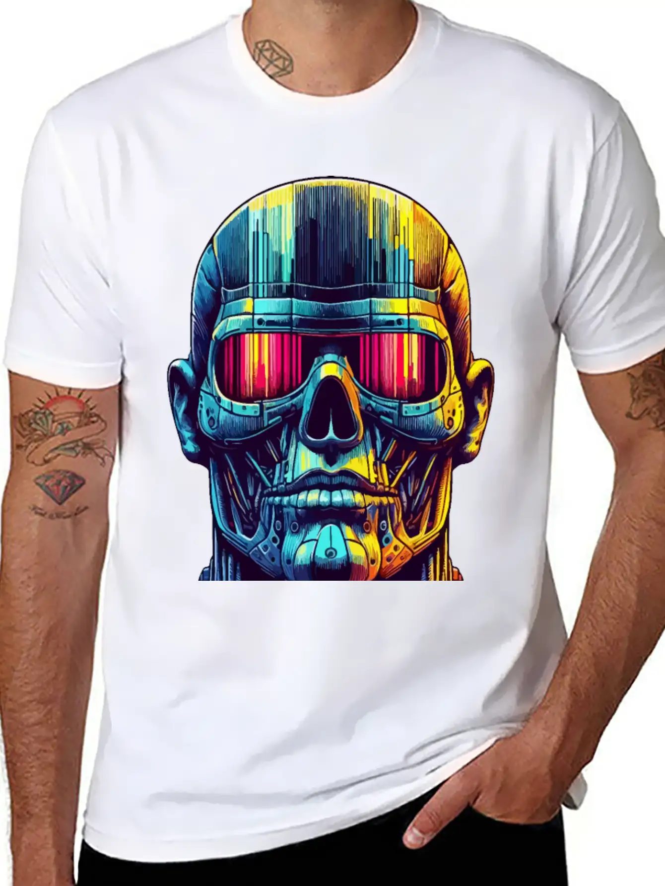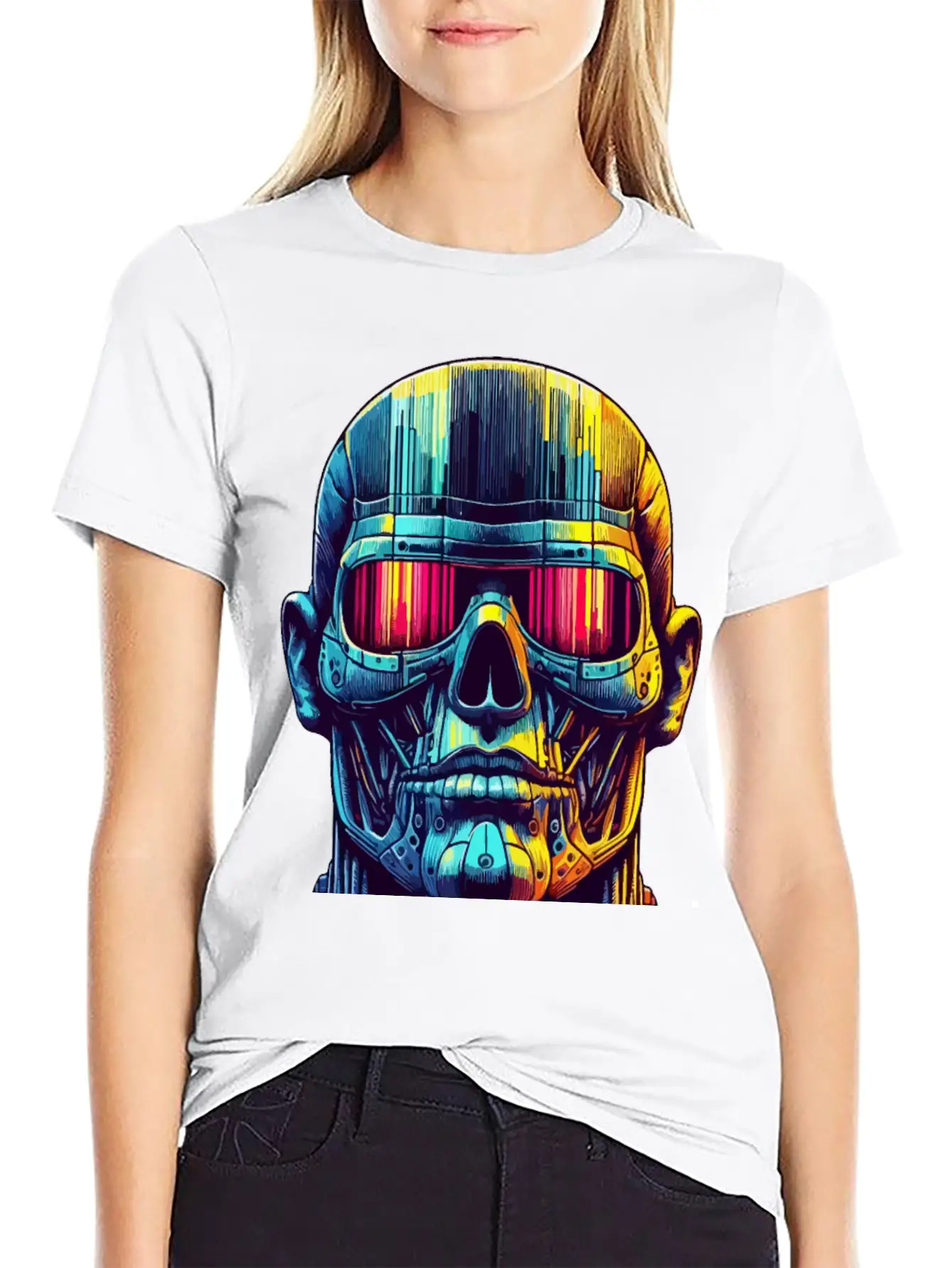 For those who love the Neon Cyber Skull with Futuristic Visor and Vibrant or just want something different, this shirt makes a great gift or daily essential.
