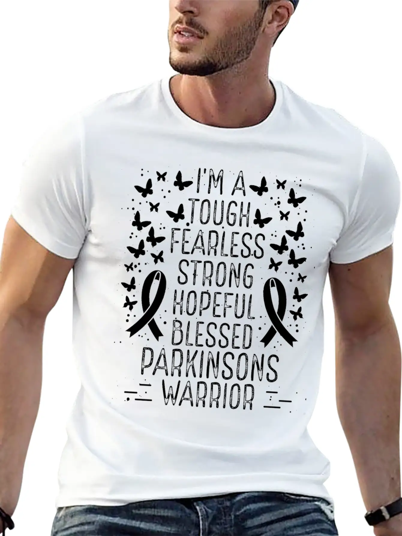 This T-shirt features a clean and artistic depiction of the Parkinsons Awareness Ribbon Warrior Survivor, perfect for everyday casual wear. Soft, breathable cotton.