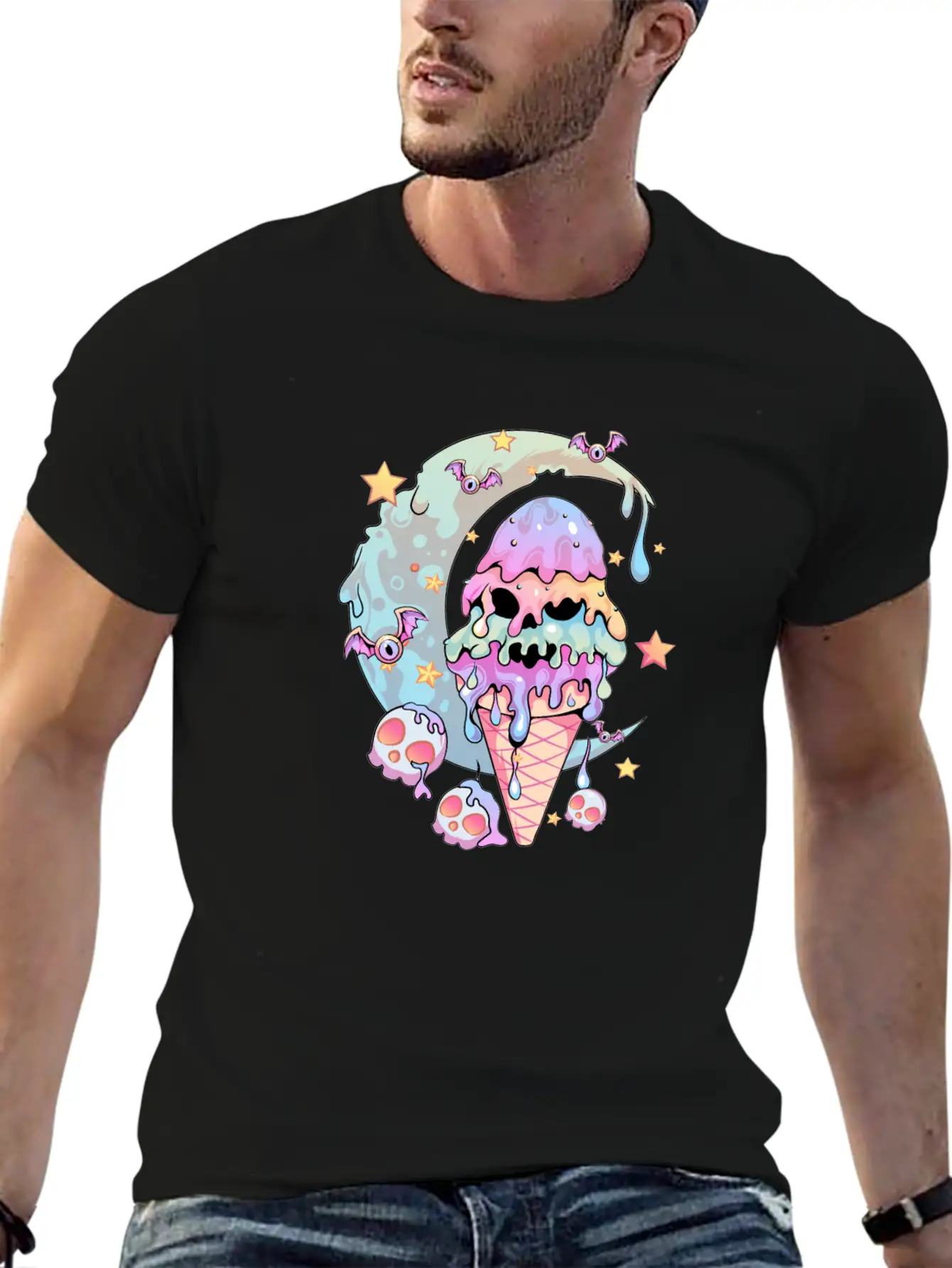 This graphic T-shirt blends everyday wearability with a distinct Pastel Goth Ice cream Kawaii design. Made from soft, breathable cotton.