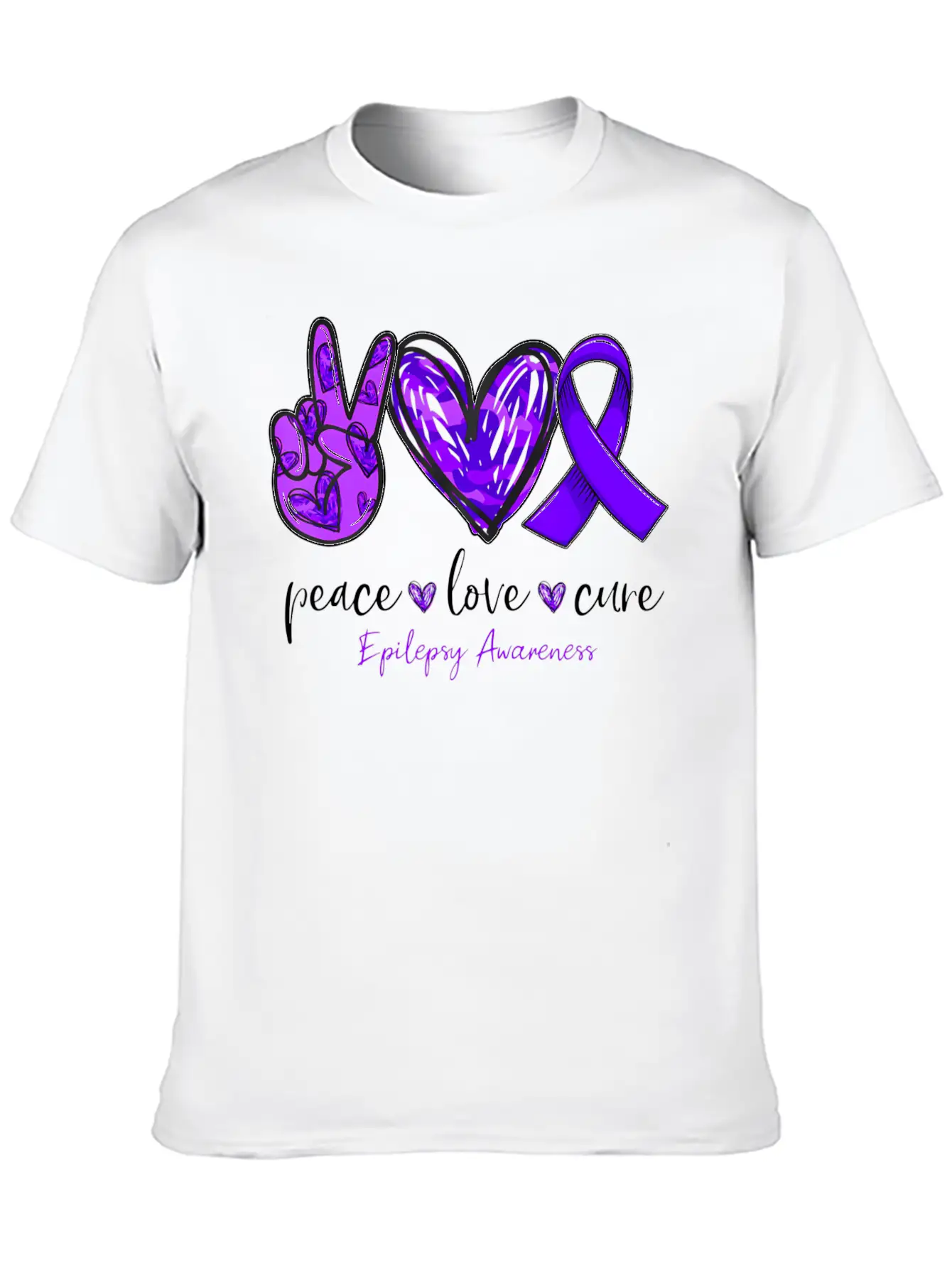 Peace Love Cure Purple Ribbon Epilepsy Awareness M Basic Graphic T-Shirt – Daily Comfort In Soft Cotton