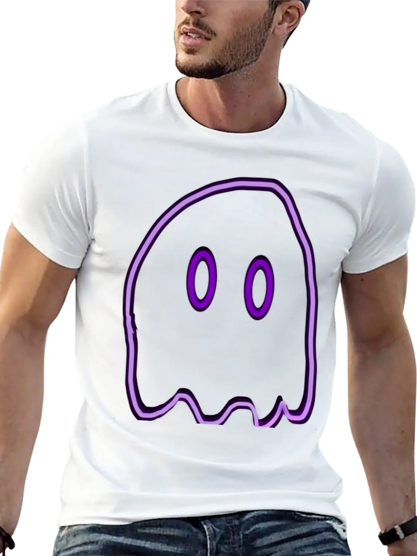 Purple Neon Ghost Basic Graphic T-Shirt – Daily Comfort In Soft Cotton