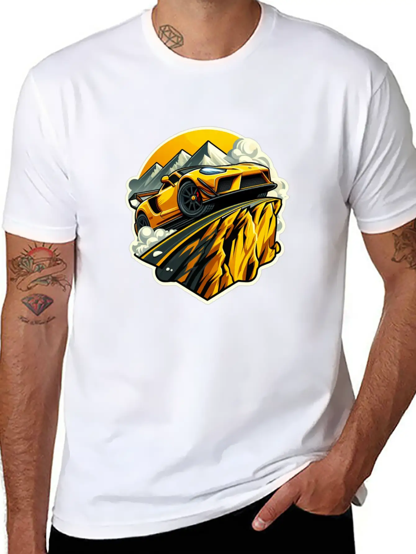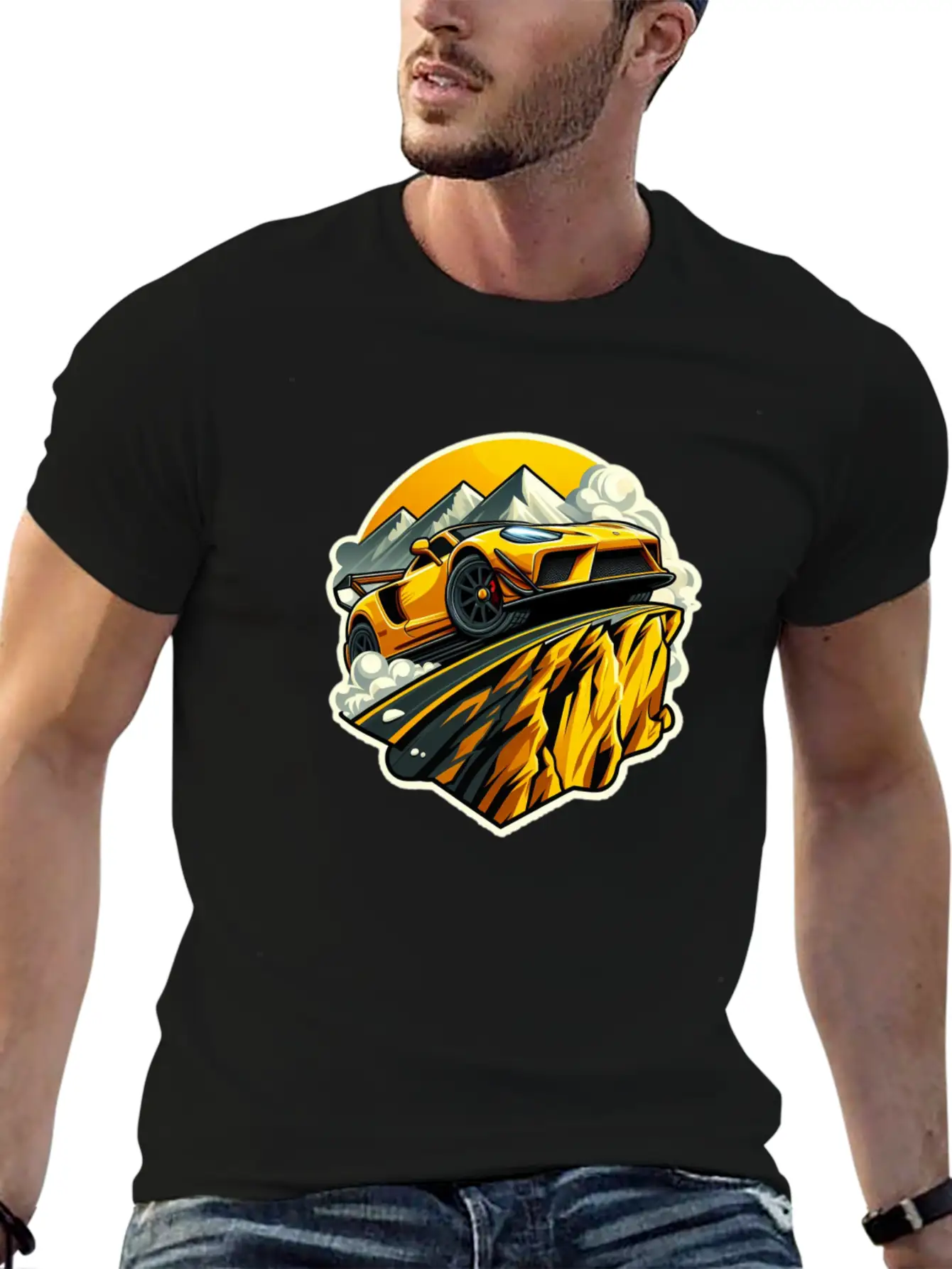 Racing Car Climbing A Mountain Stylish Everyday T-Shirt – Unisex Basic Cotton Tee