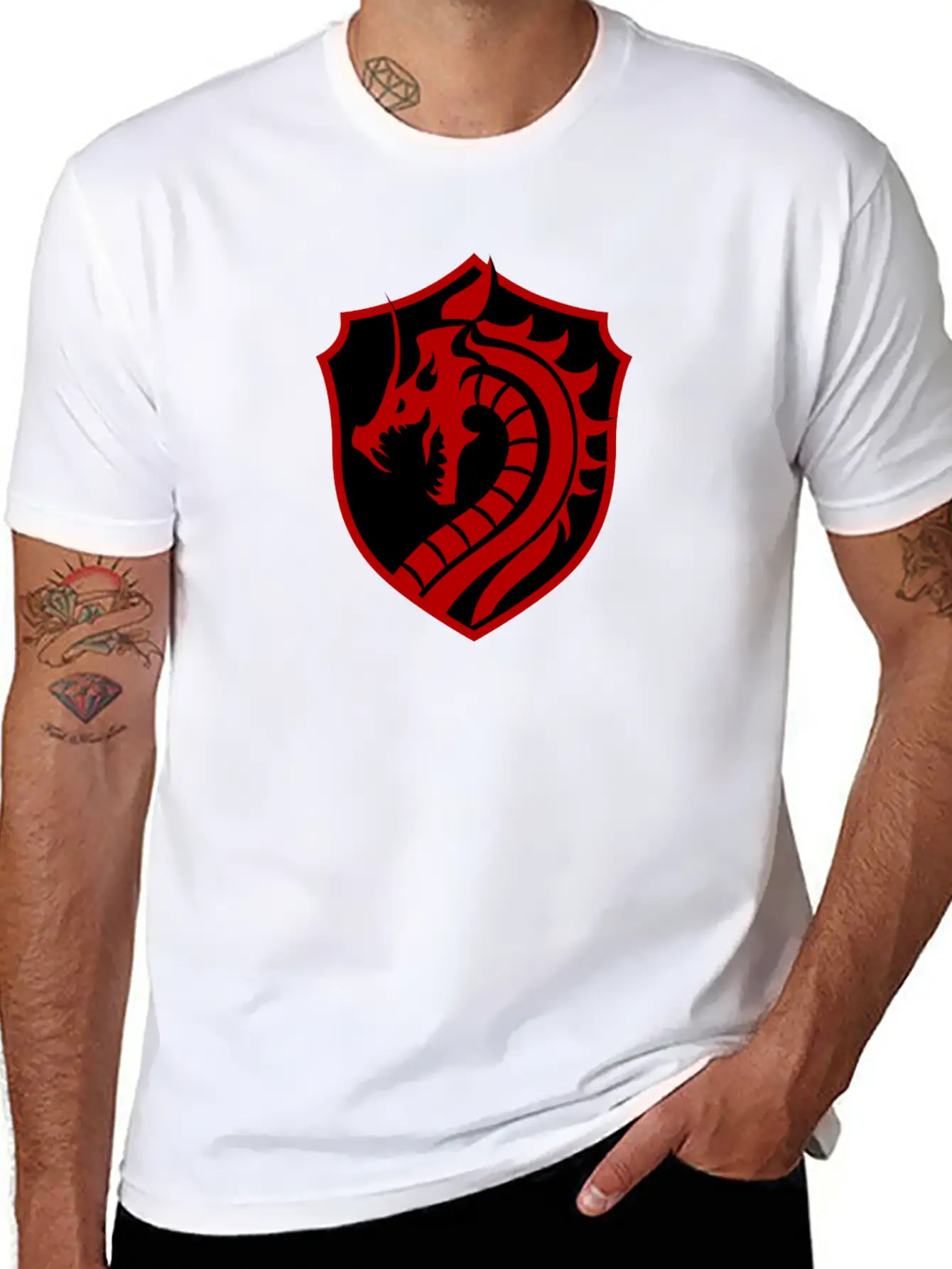 This T-shirt features a clean and artistic depiction of the Red/black dragon, perfect for everyday casual wear. Soft, breathable cotton.