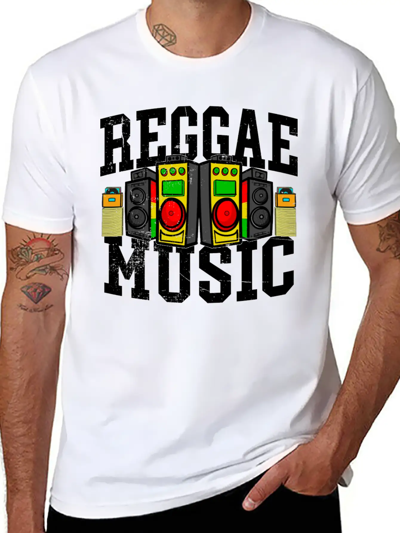 Reggae Music Sound System Boombox Jamaican Roots Stylish Everyday T-Shirt – Unisex Basic Cotton Tee