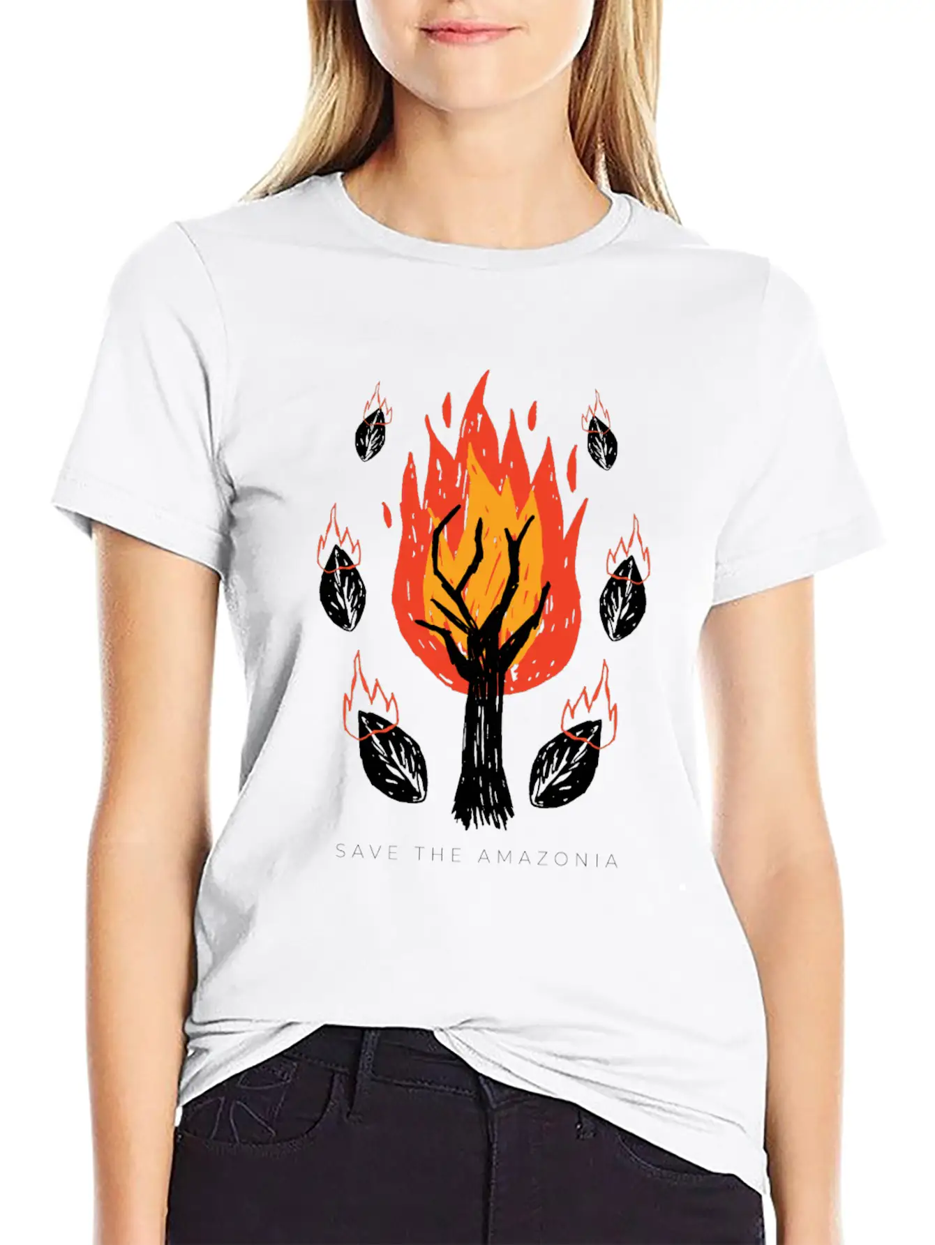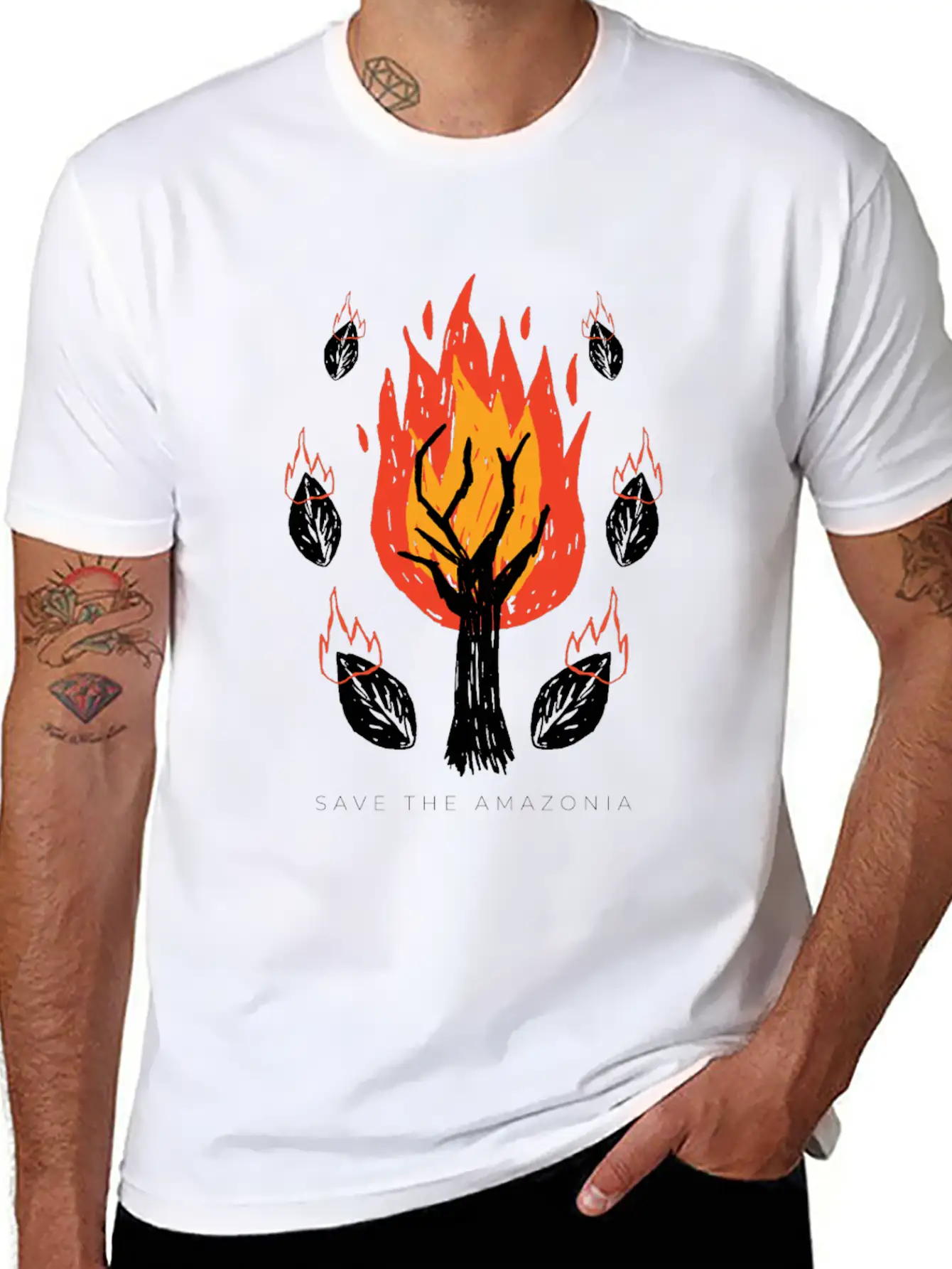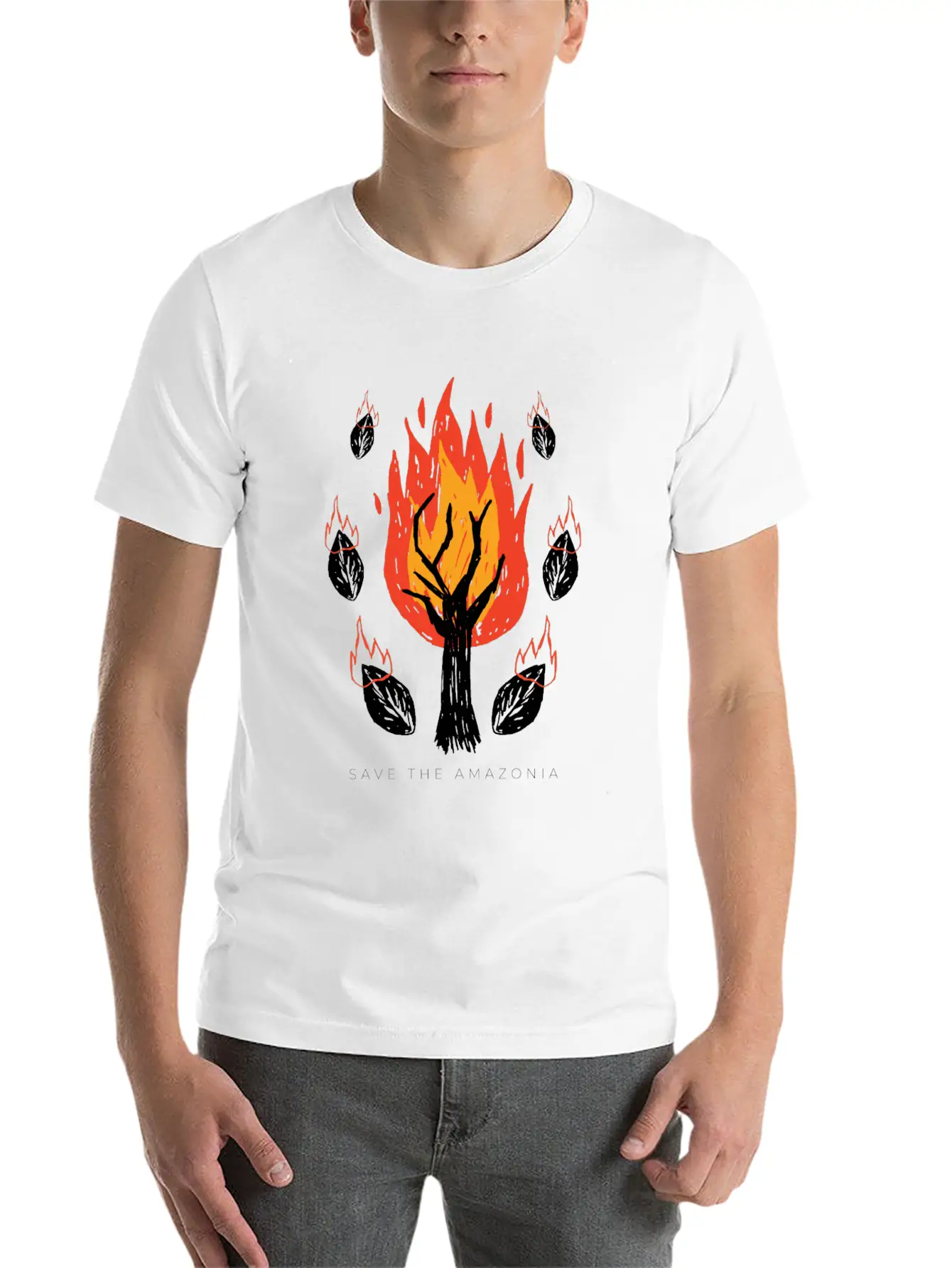 This T-shirt features a clean and artistic depiction of the Save the amazonia burning rainforest climate, perfect for everyday casual wear. Soft, breathable cotton.