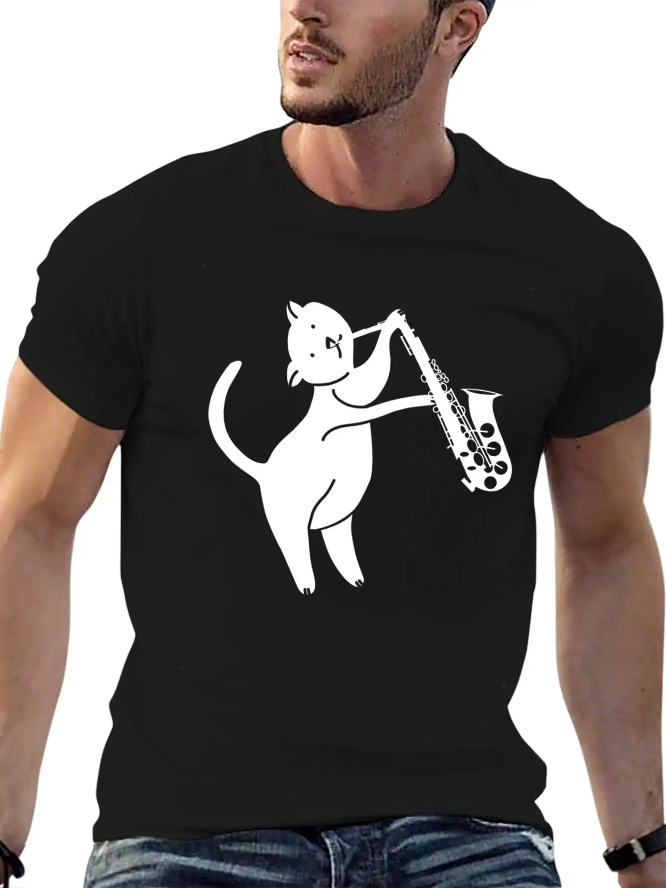 For those who love the saxophone - cat playing saxophone or just want something different, this shirt makes a great gift or daily essential.