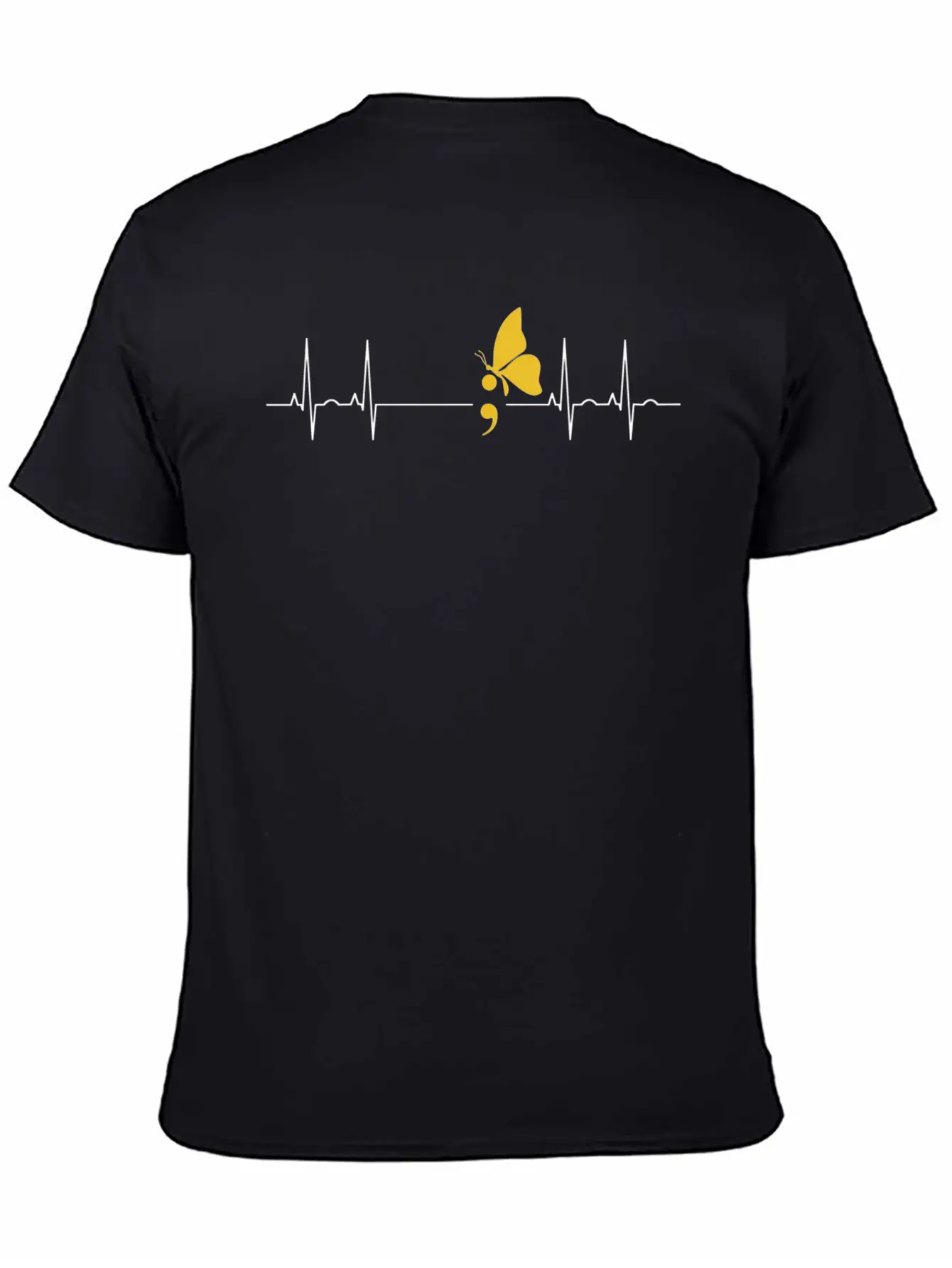 Semicolon Heartbeat Suicide Prevention Basic Graphic T-Shirt – Daily Comfort In Soft Cotton