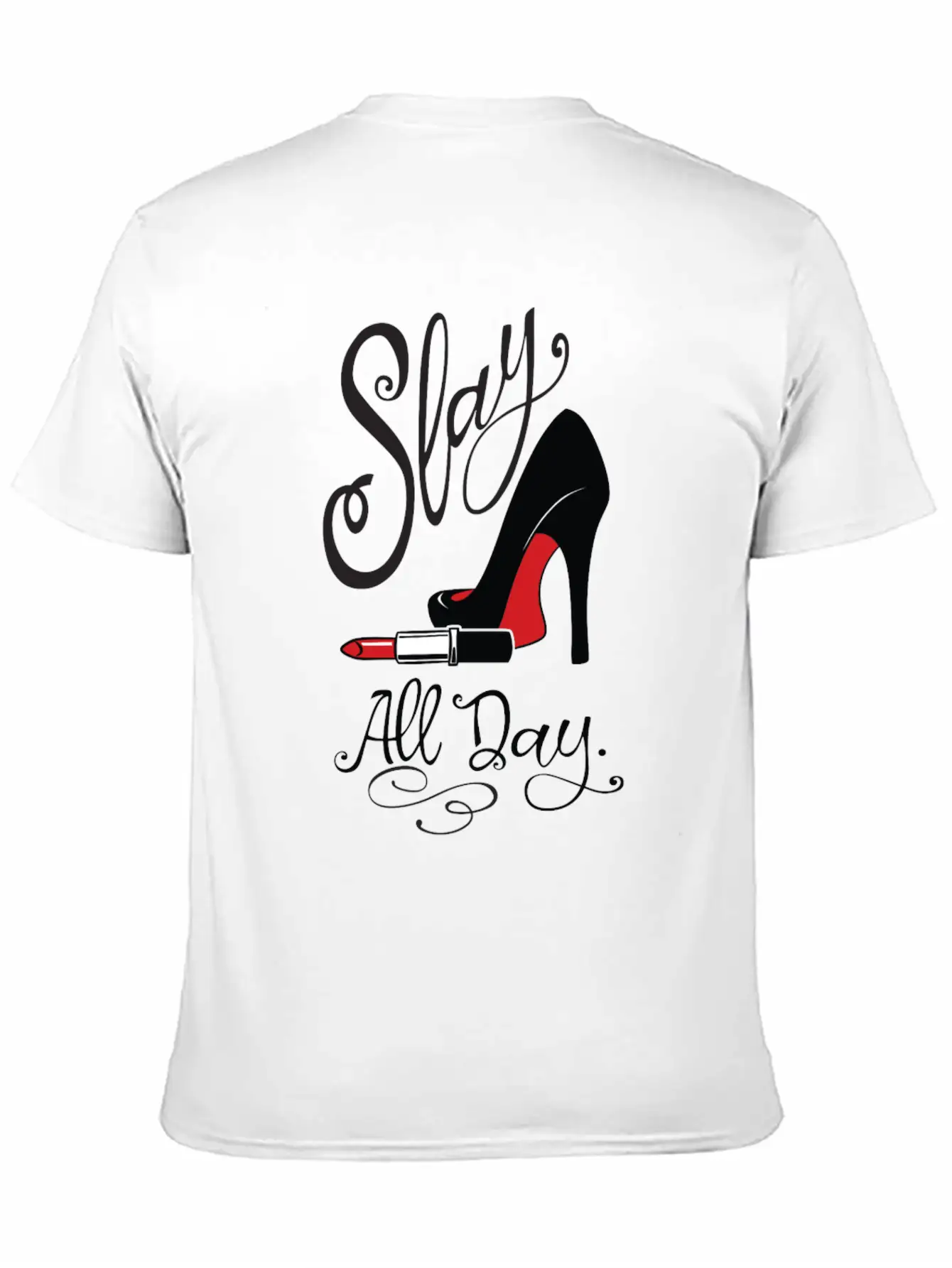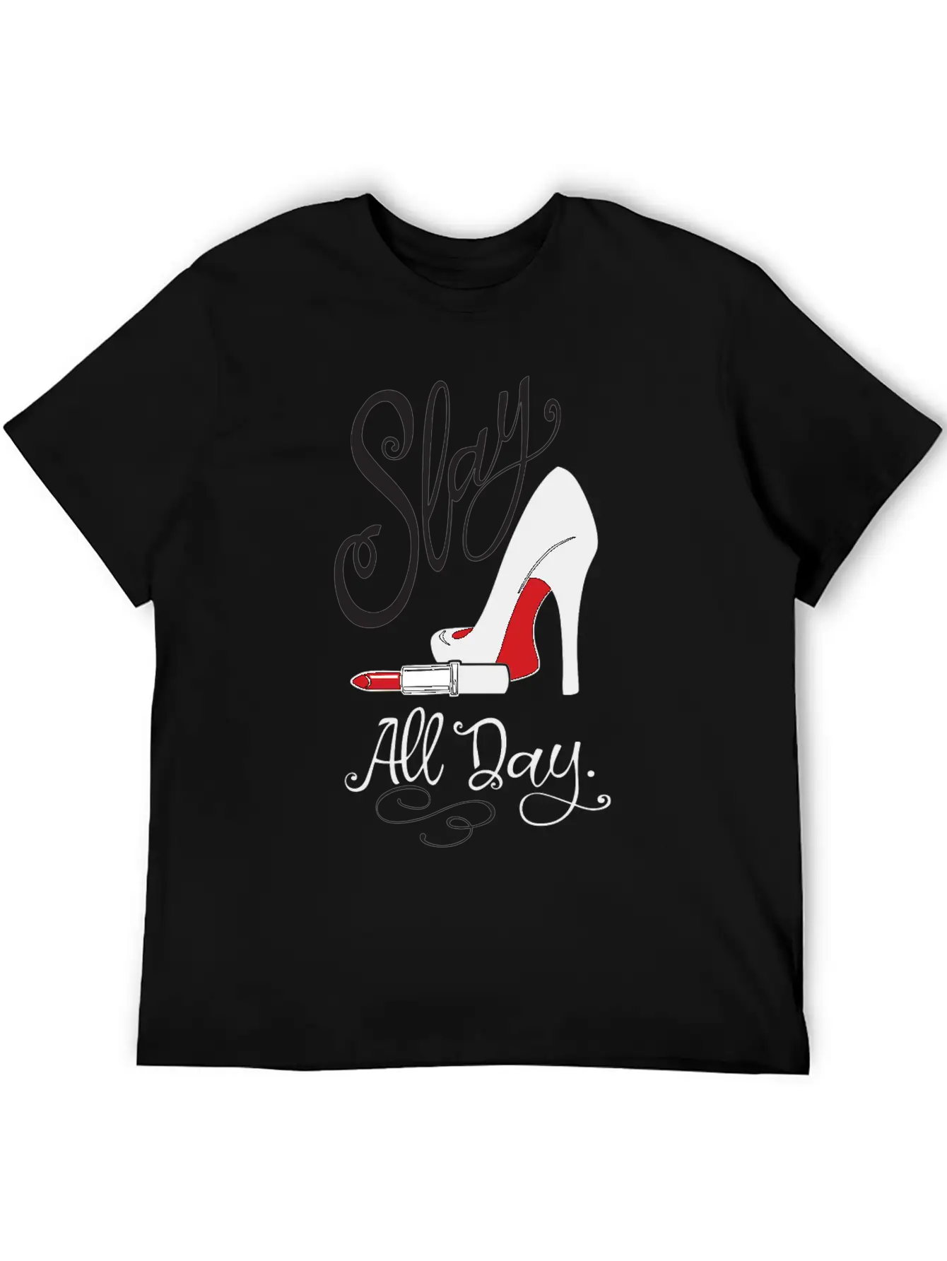 This graphic T-shirt blends everyday wearability with a distinct Slay All Day Red Lipstick & High Heels Graphic For design. Made from soft, breathable cotton.