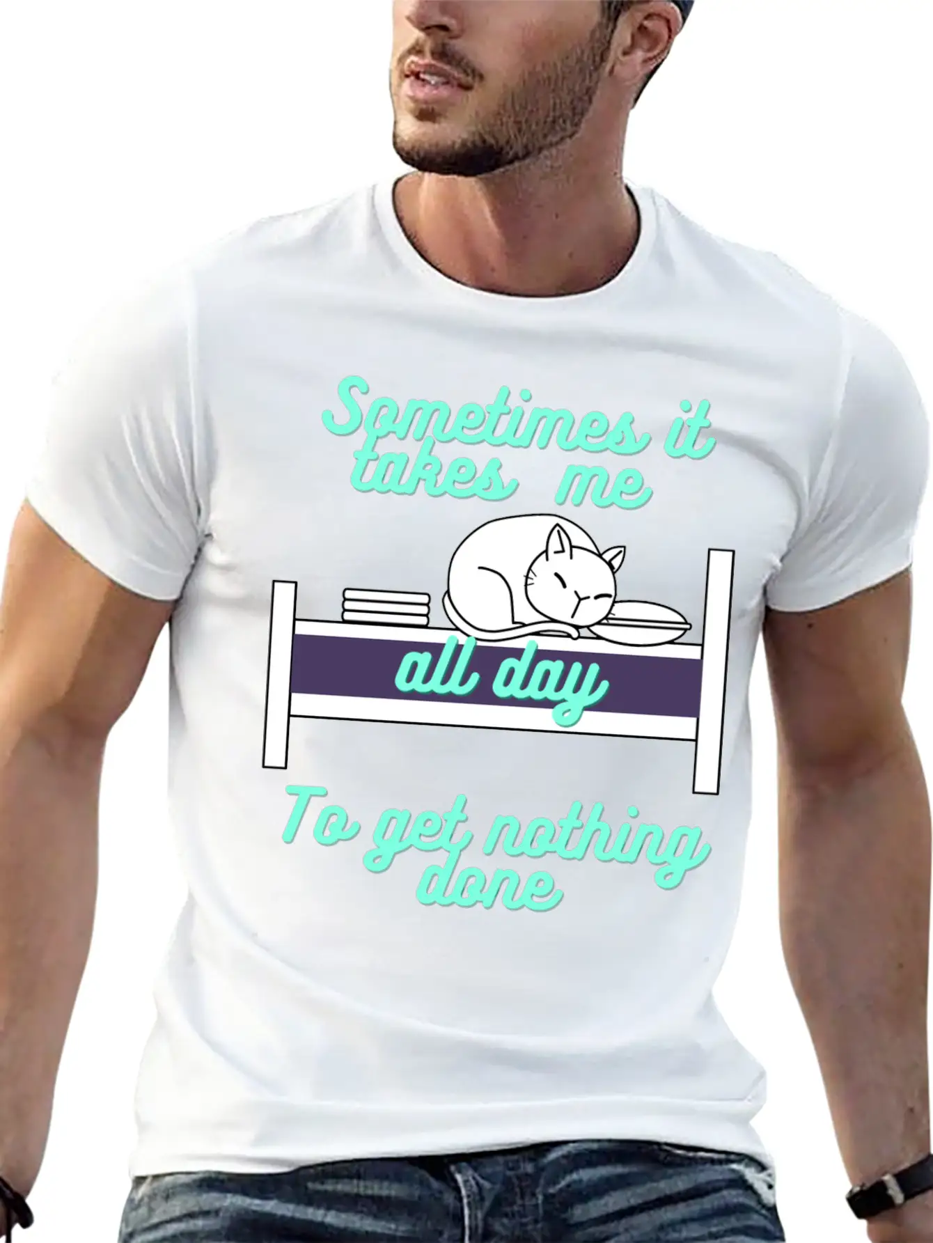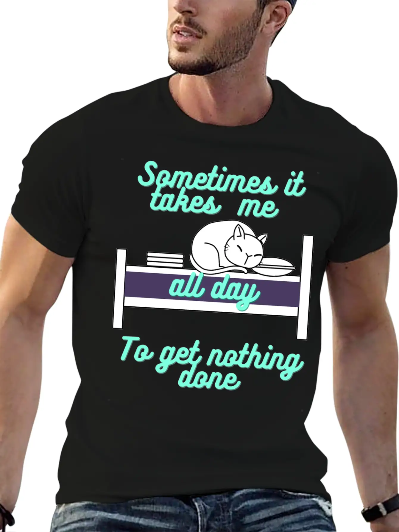For those who love the Sometimes it takes me all day to get nothing done or just want something different, this shirt makes a great gift or daily essential.