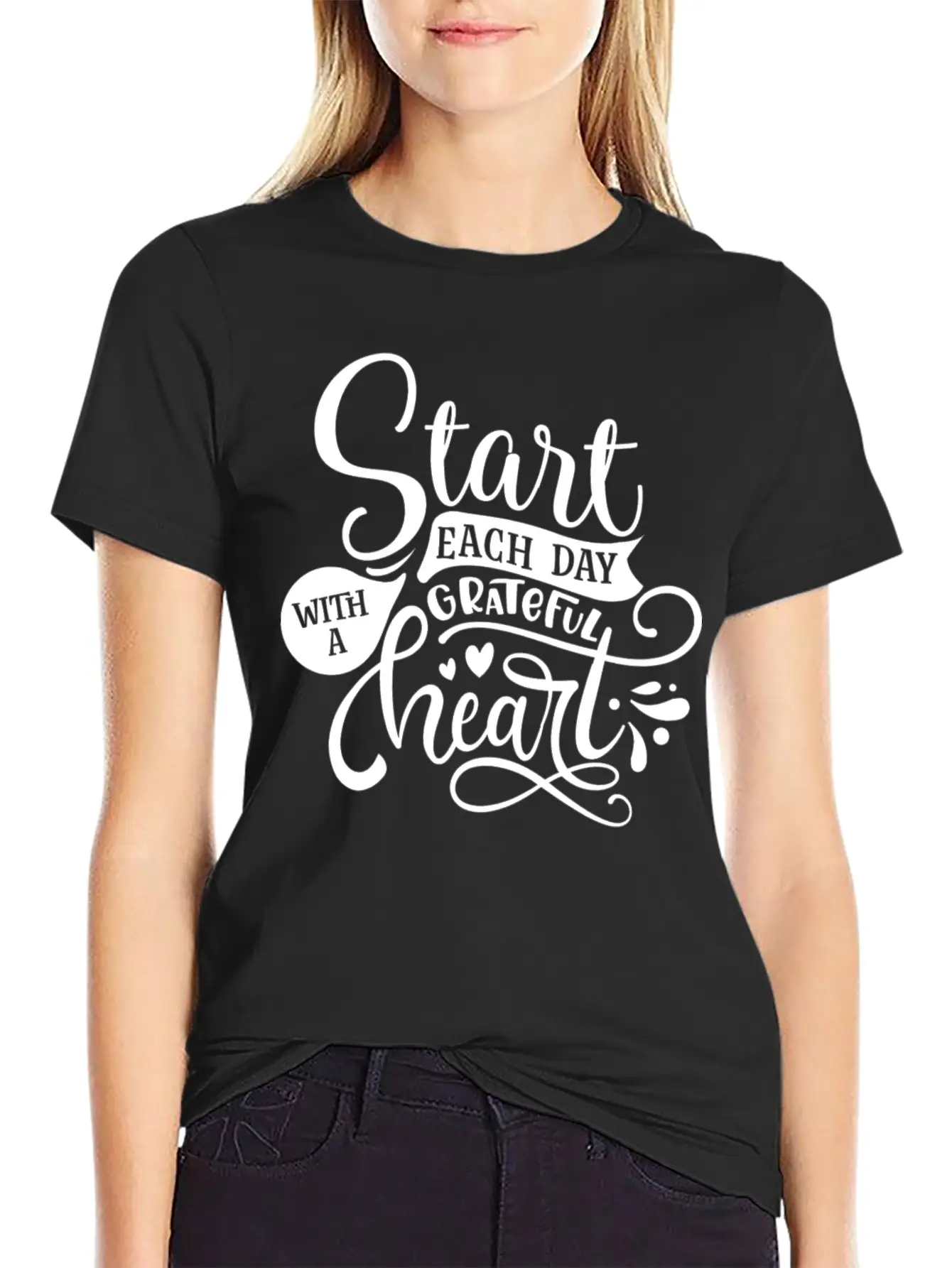 Start Each Day With A Grateful Heart Simple Everyday Graphic Tee – Lightweight Summer Wear