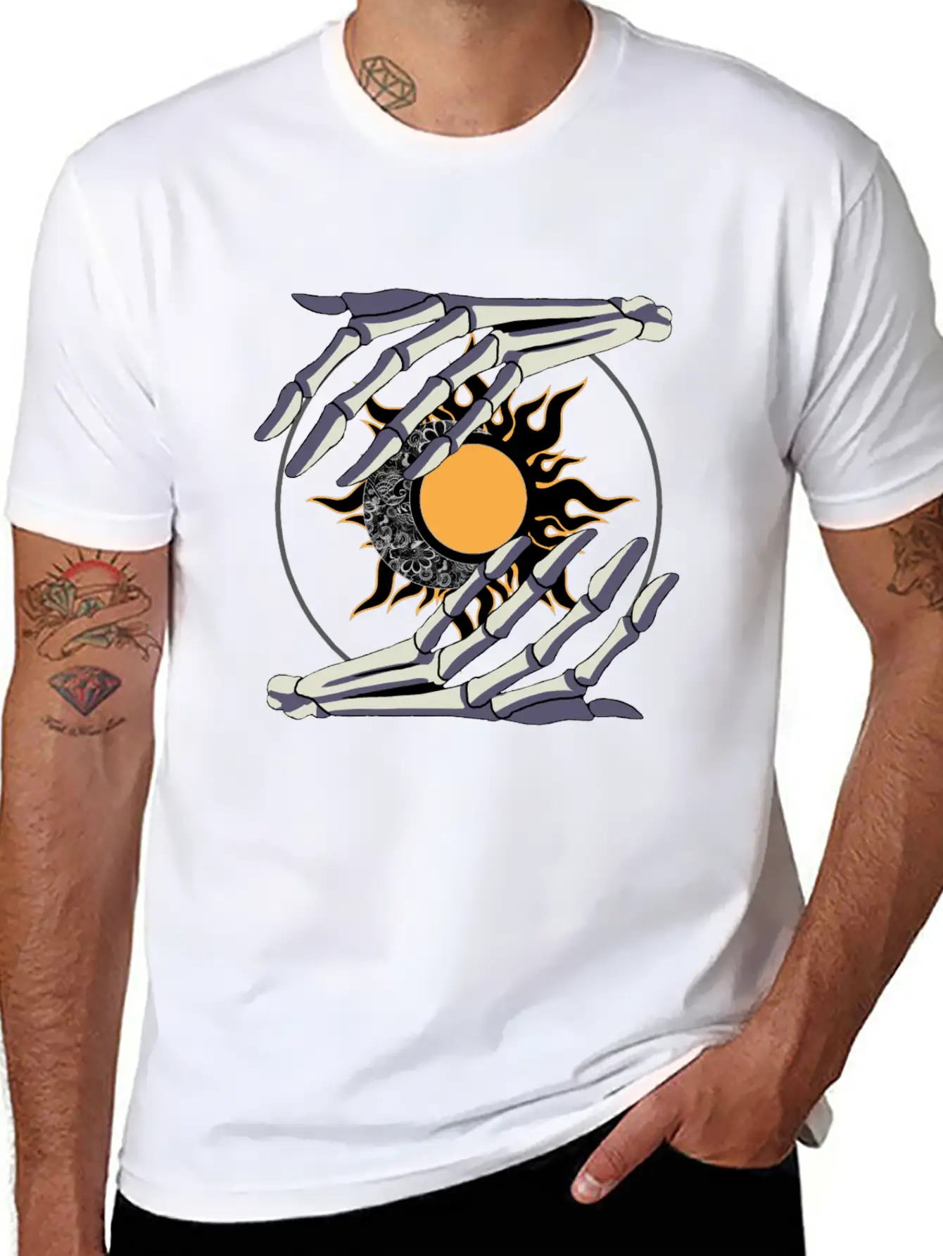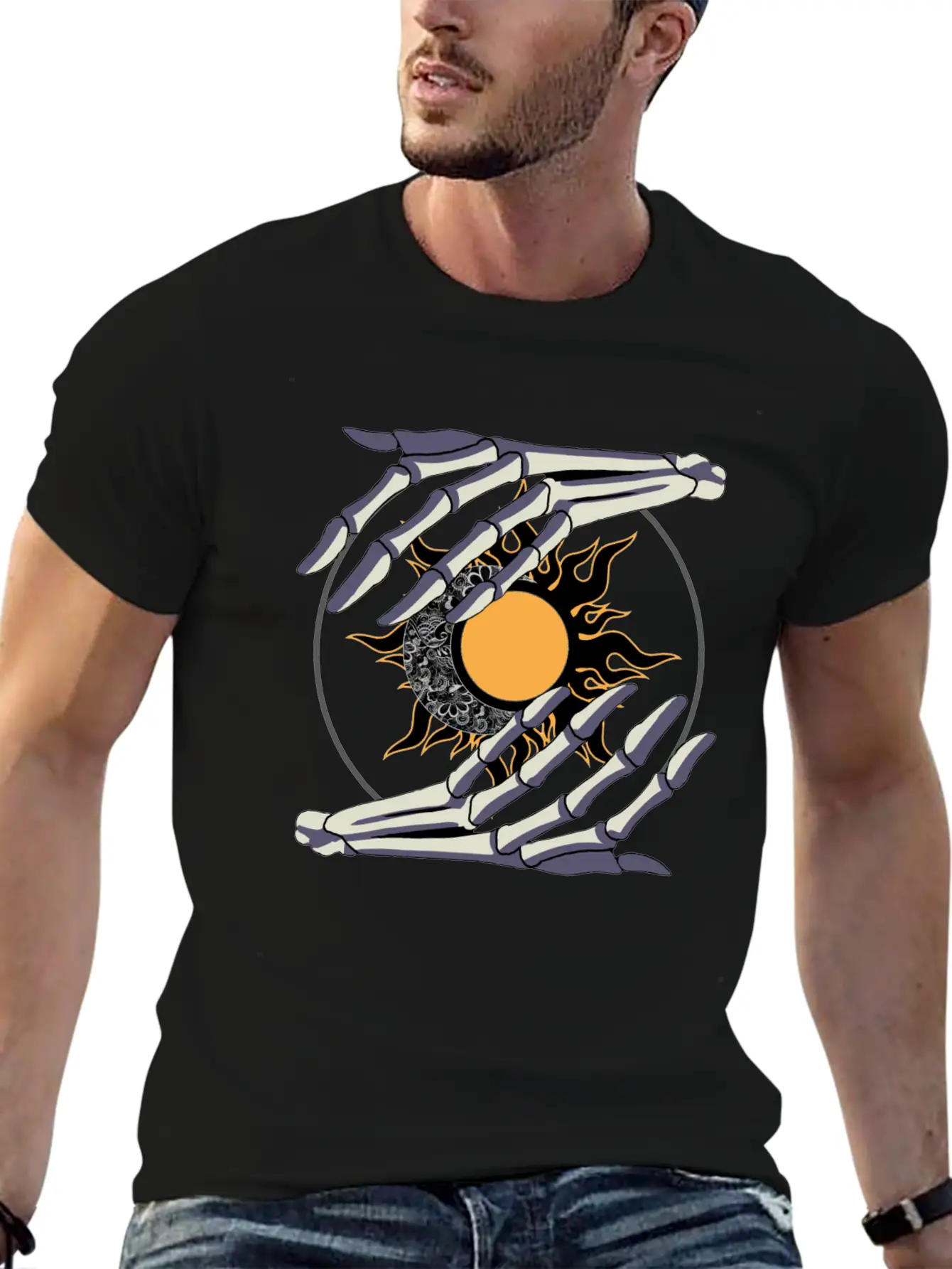 Sun And Moon In Skeleton Hands #2 Stylish Everyday T-Shirt – Unisex Basic Cotton Tee