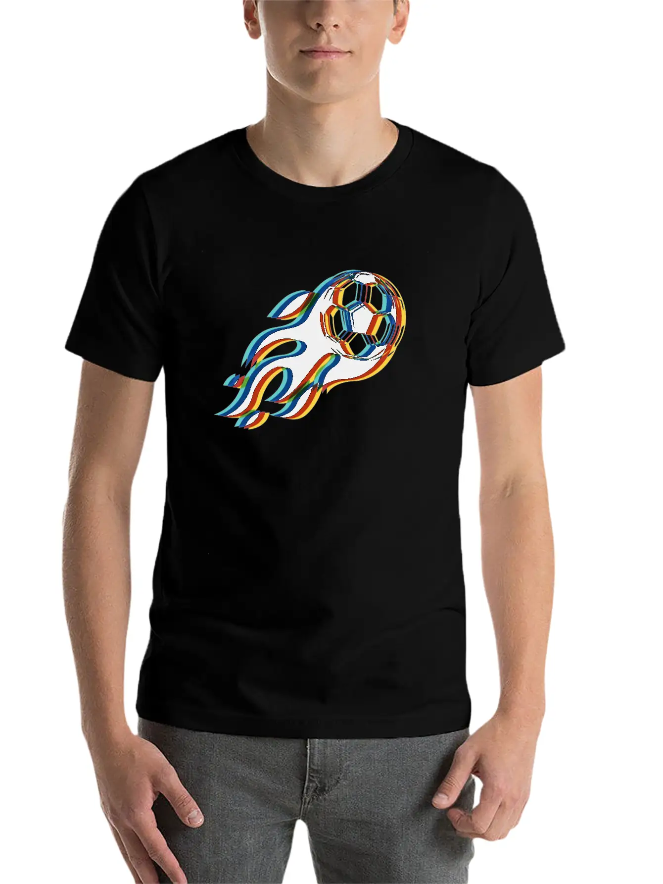 Surrealistic Soccer Ball On Fire Classic Crew Neck Graphic Tee – Everyday Minimal Look