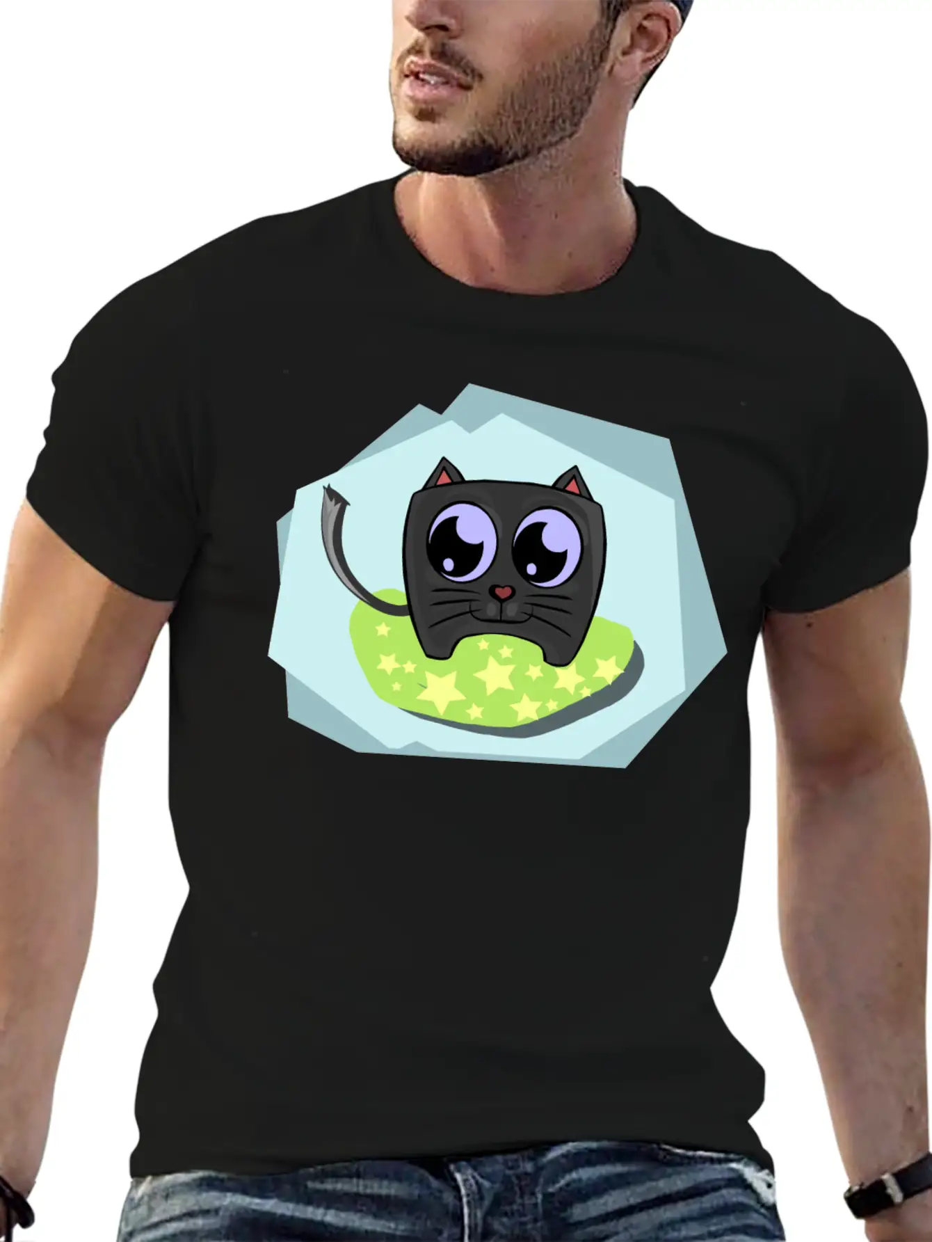 A breathable and stylish tee that features the Sweet black cat with blue background, crafted to match your everyday lifestyle.