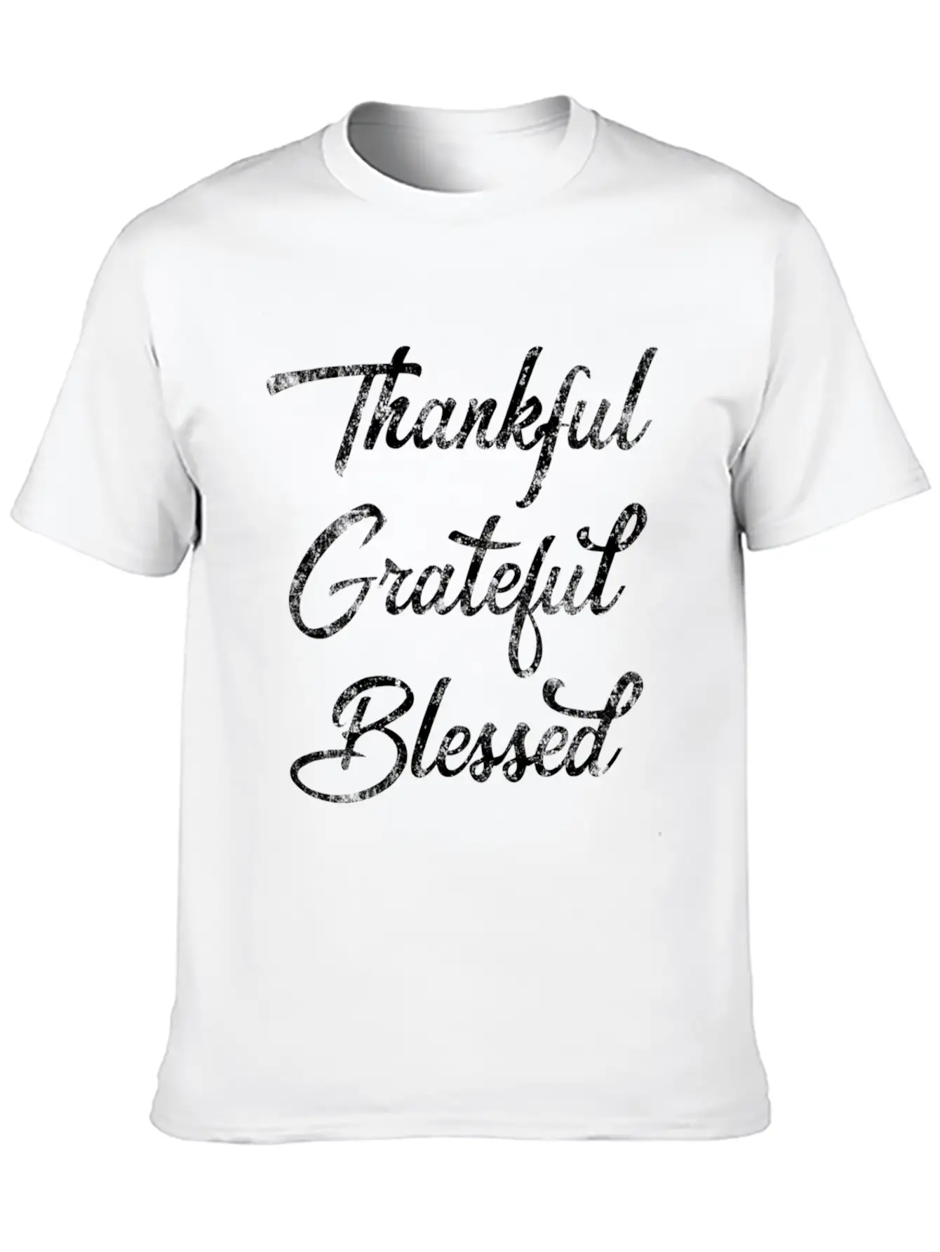 Thankful Grateful Blessed Thangiving Breathable Graphic T-Shirt – Perfect For Casual Days