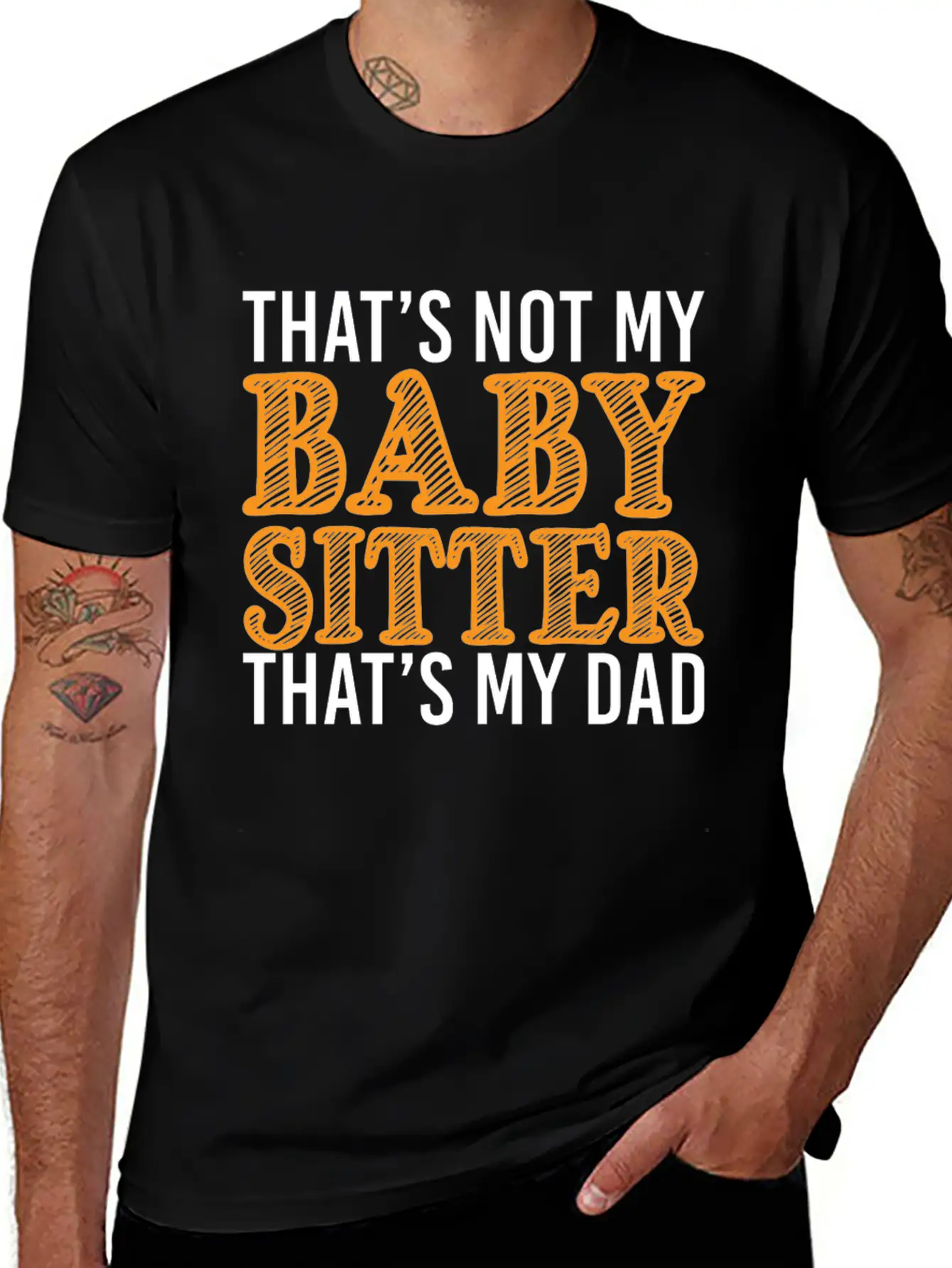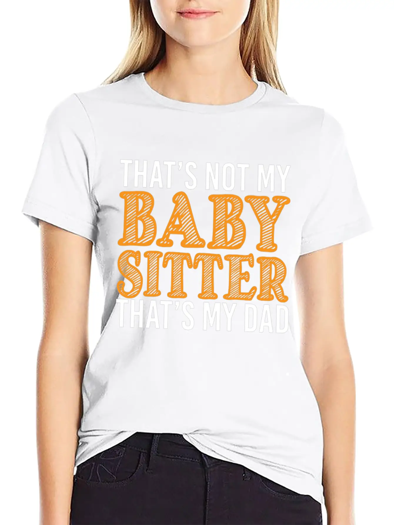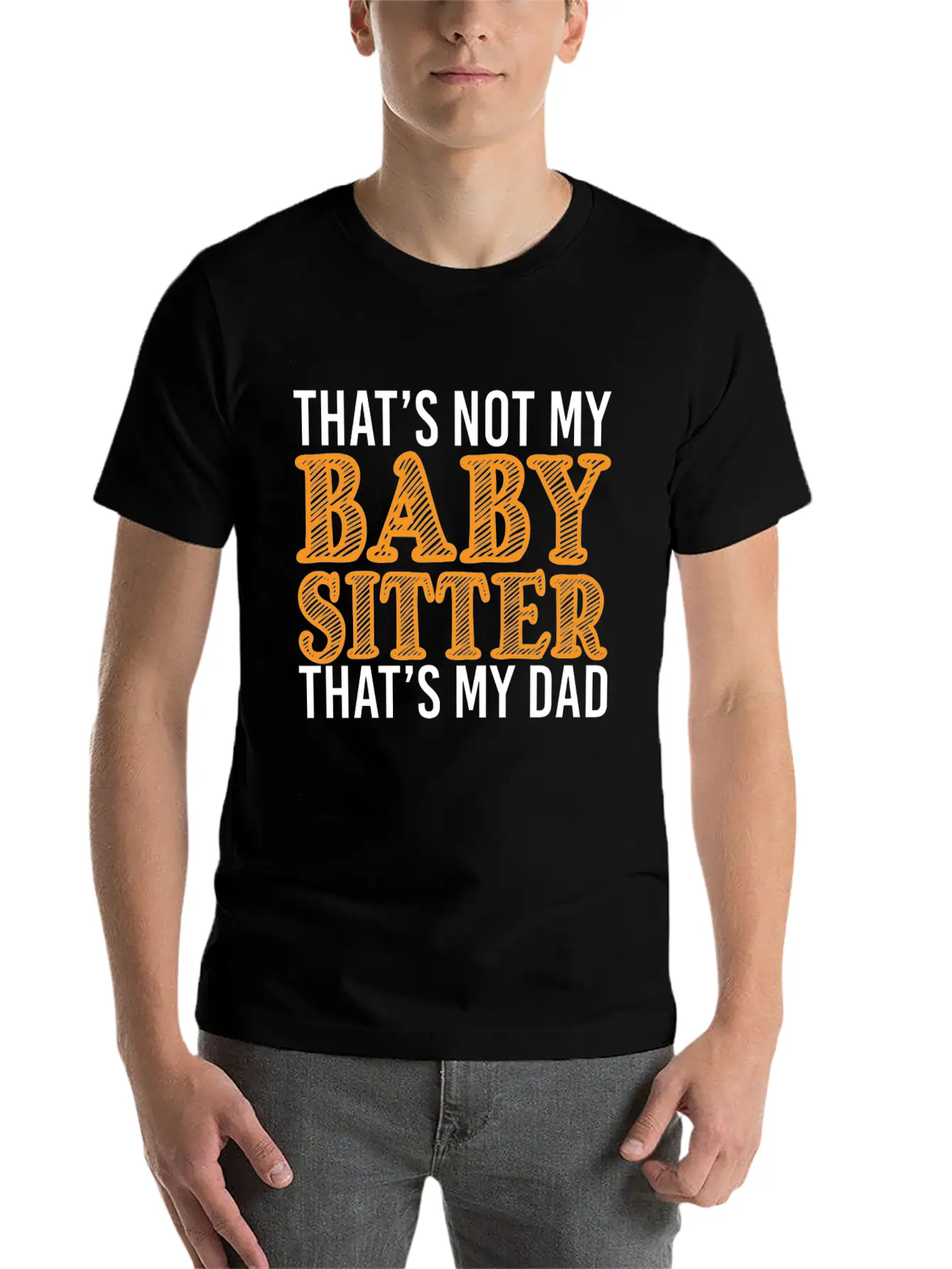 Add a hint of That's Not My Babysitter That's My Dad to your wardrobe with this minimalist graphic tee. Lightweight and perfect for all seasons.