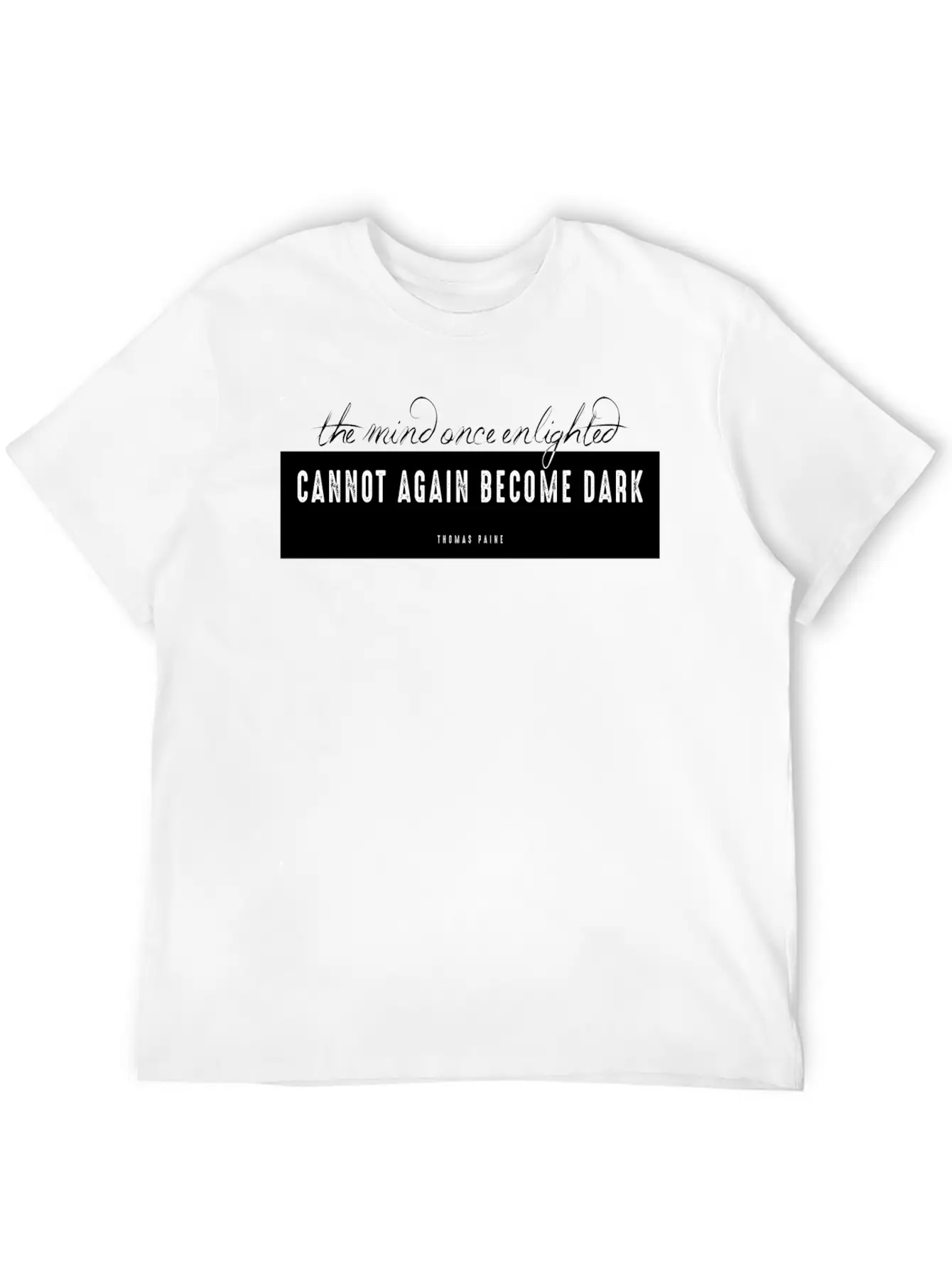 This graphic T-shirt blends everyday wearability with a distinct The mind once enlighted cannot again become dark. design. Made from soft, breathable cotton.