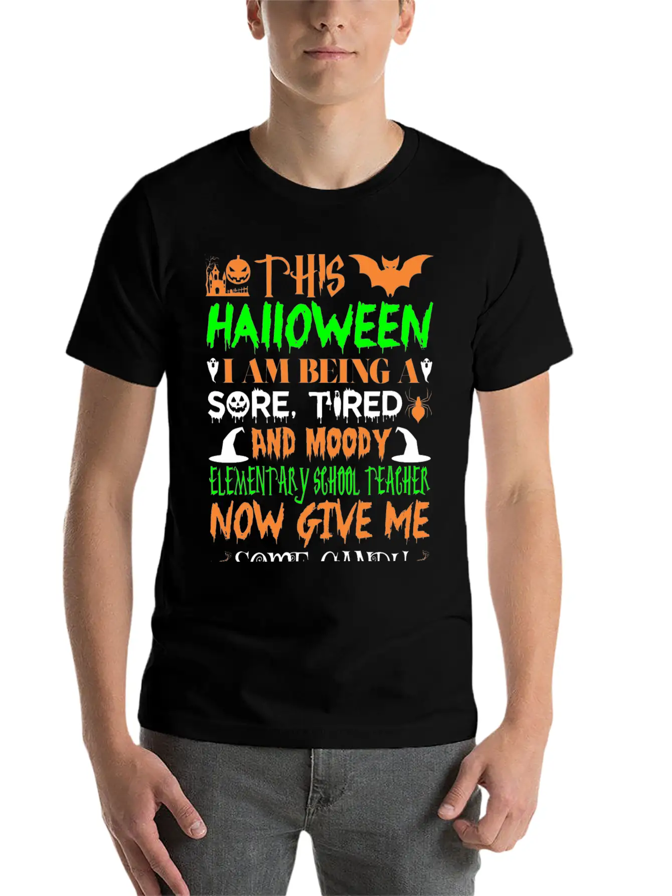 This Halloween Tired Moody Elementary Teachr Candy Basic Graphic T-Shirt – Daily Comfort In Soft Cotton