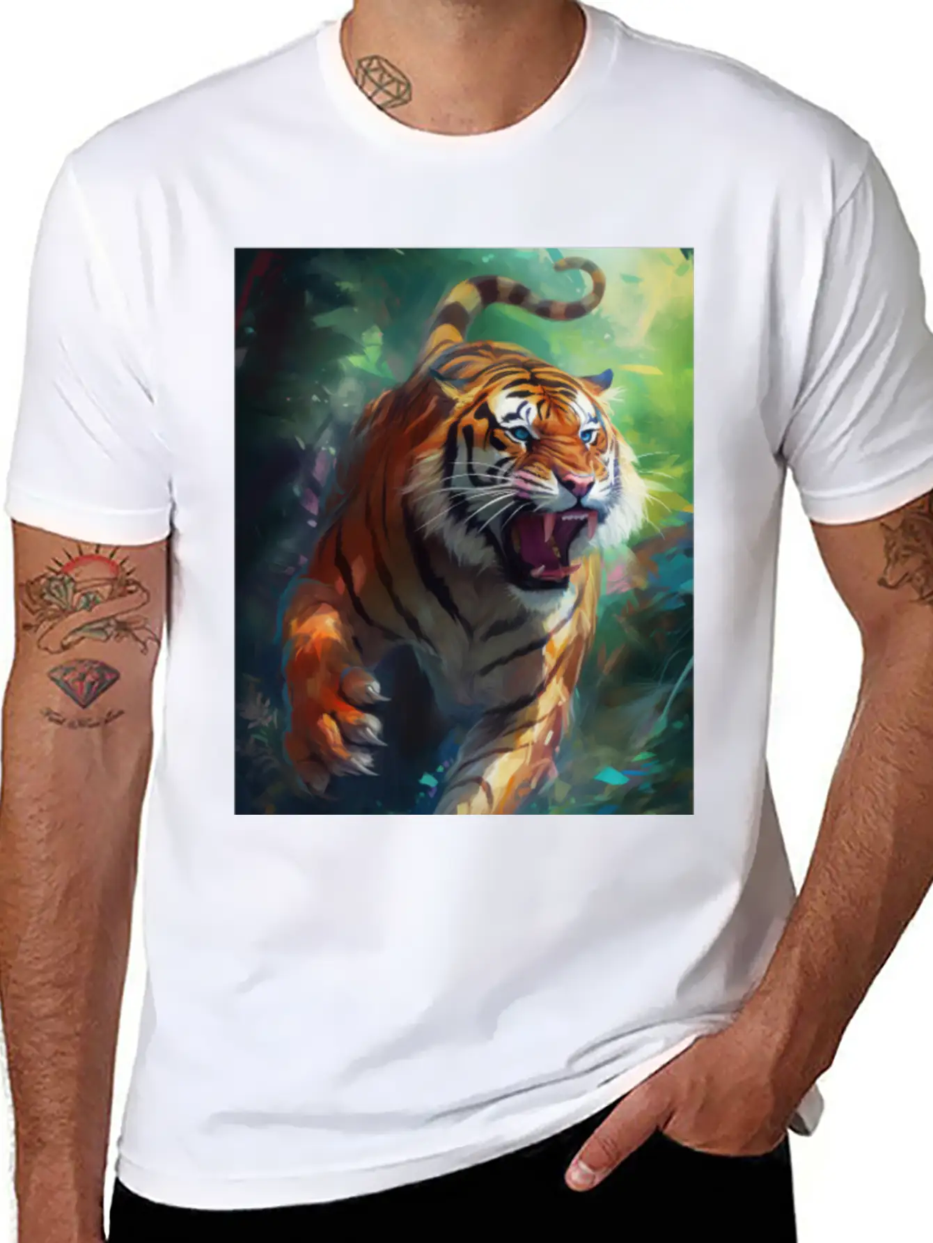 Tiger In Action Stylish Everyday T-Shirt – Unisex Basic Cotton Tee