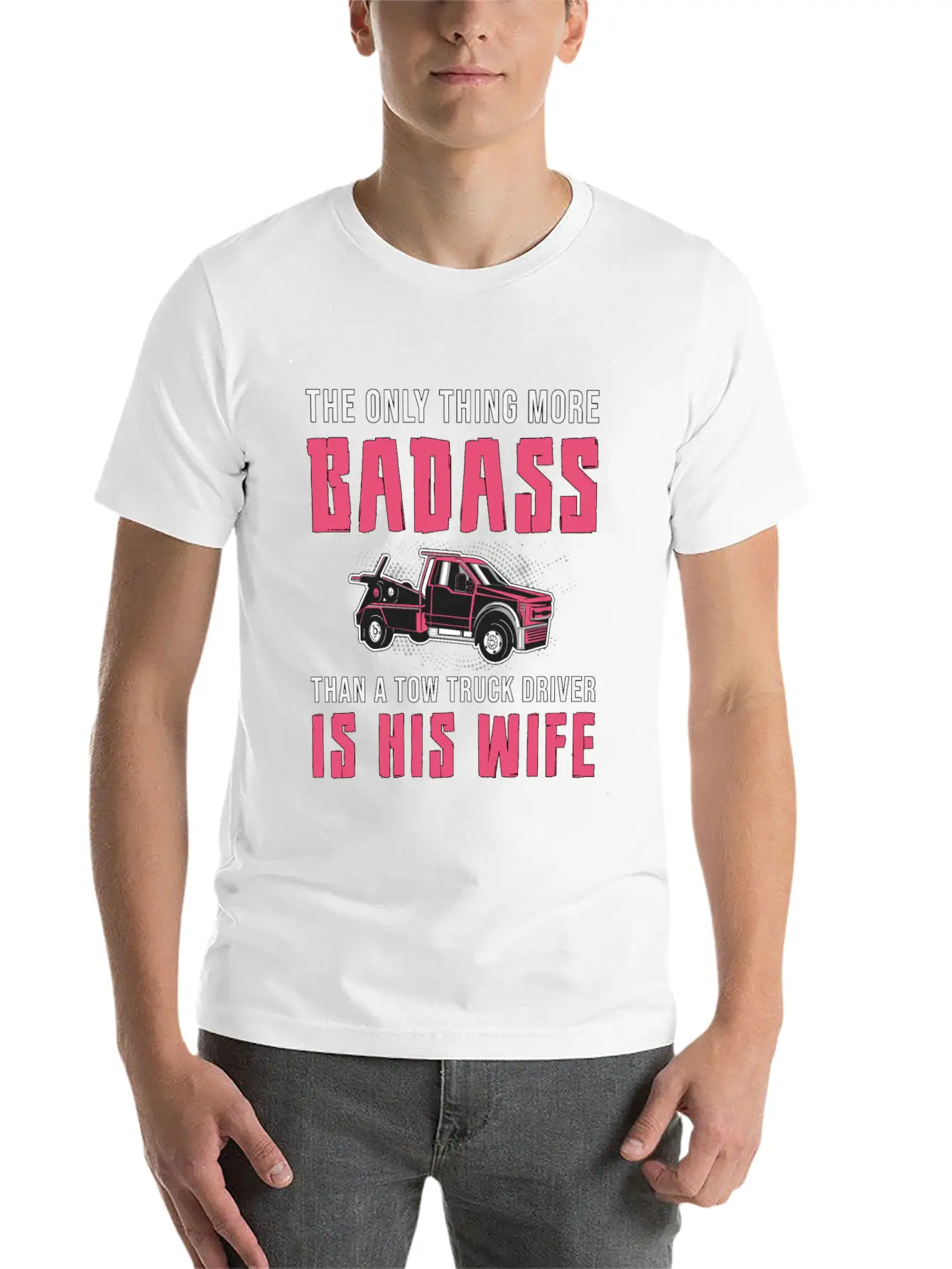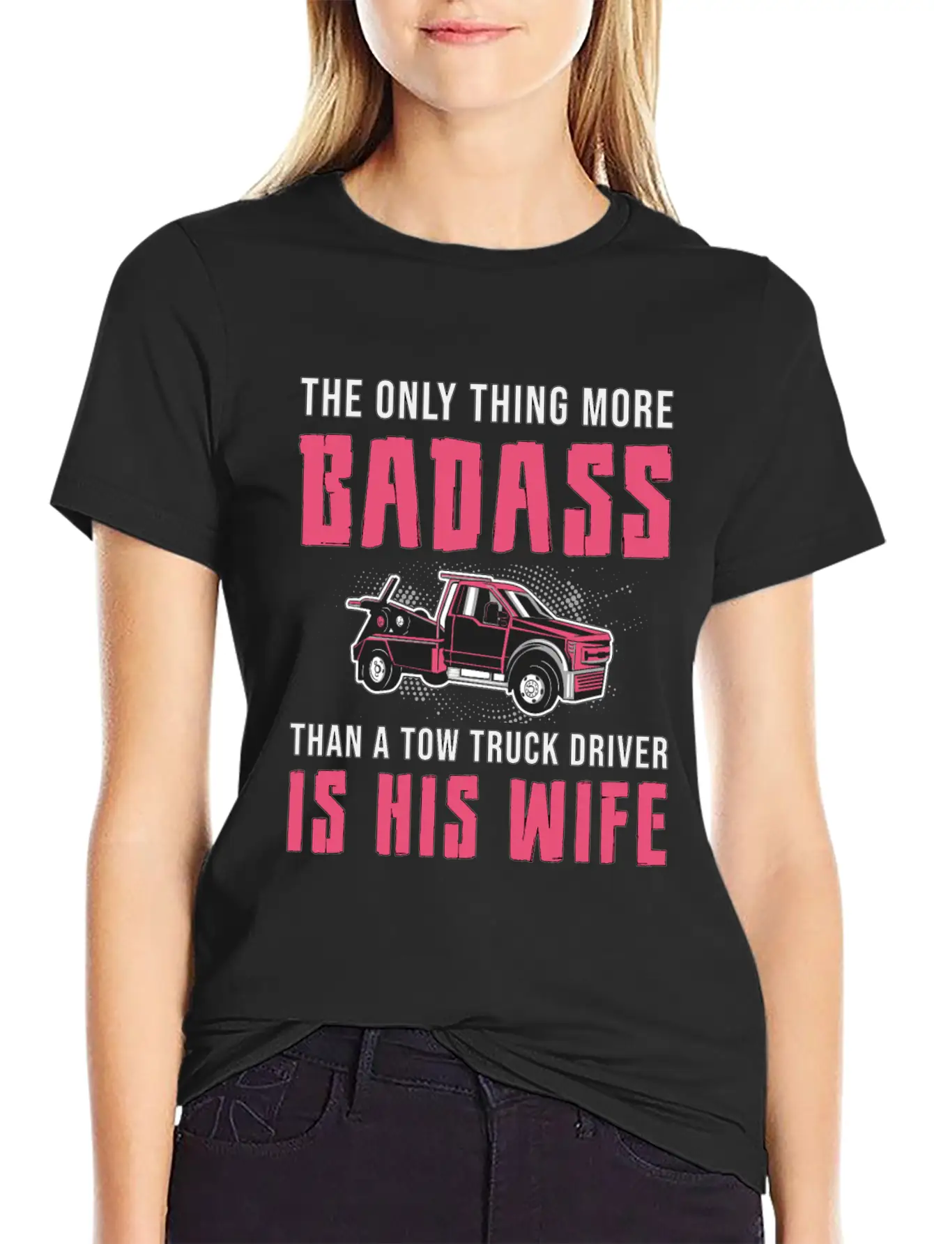 Designed with a bold yet minimal Truckers Wife A Tow Truck Driver Is His Wife Funny print, this tee brings subtle personality to your wardrobe. Lightweight and comfortable.