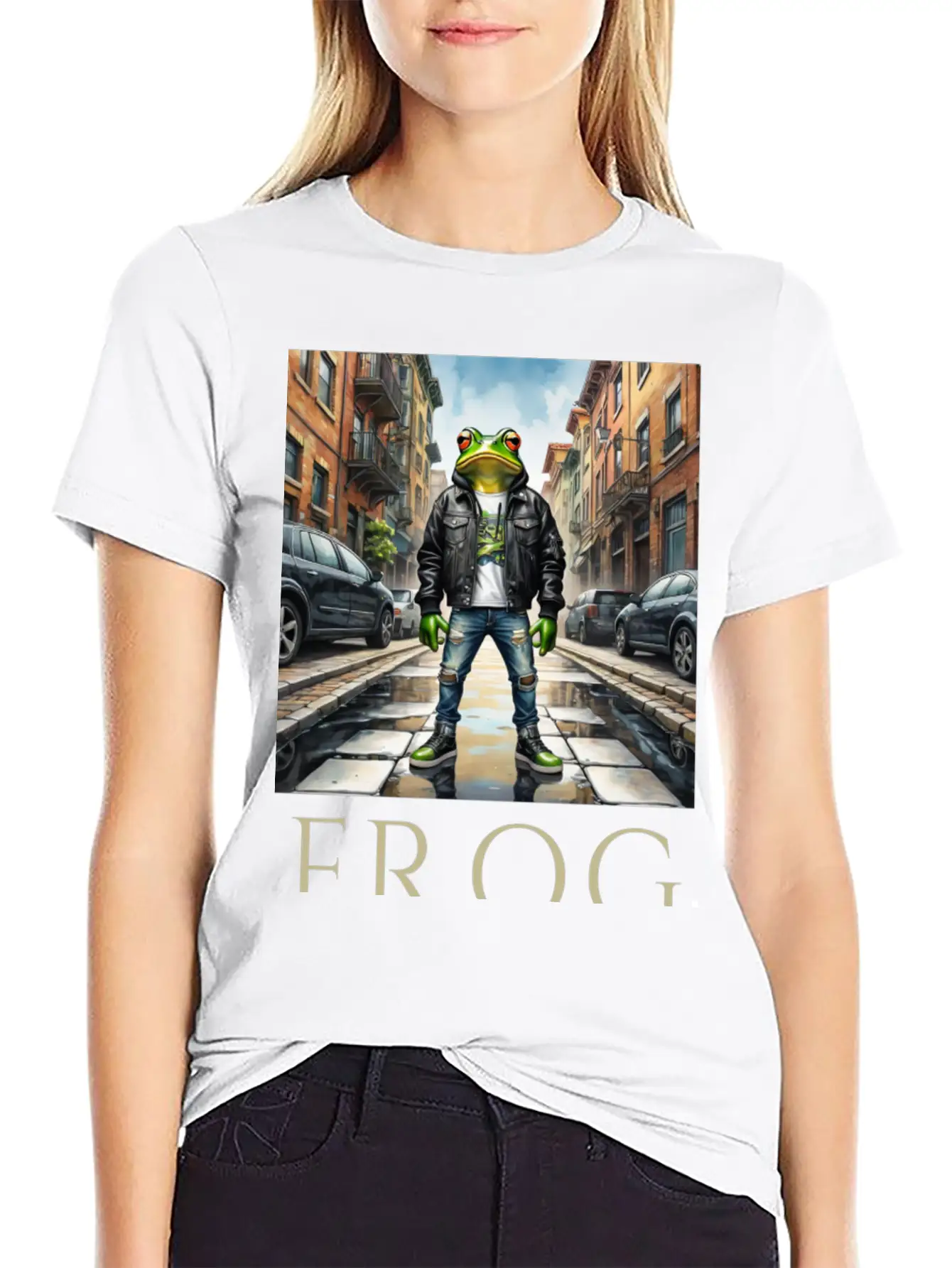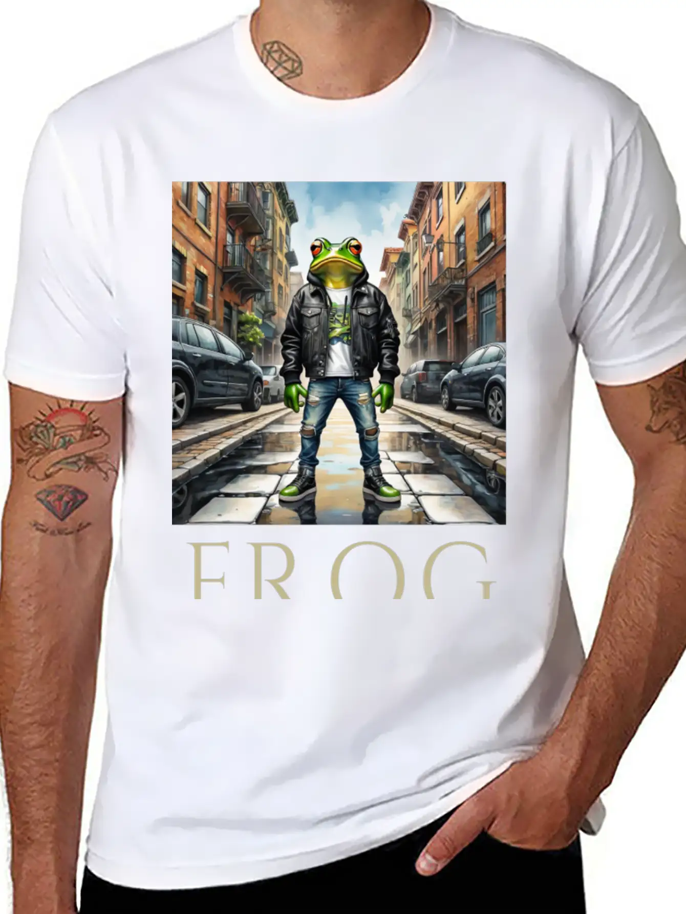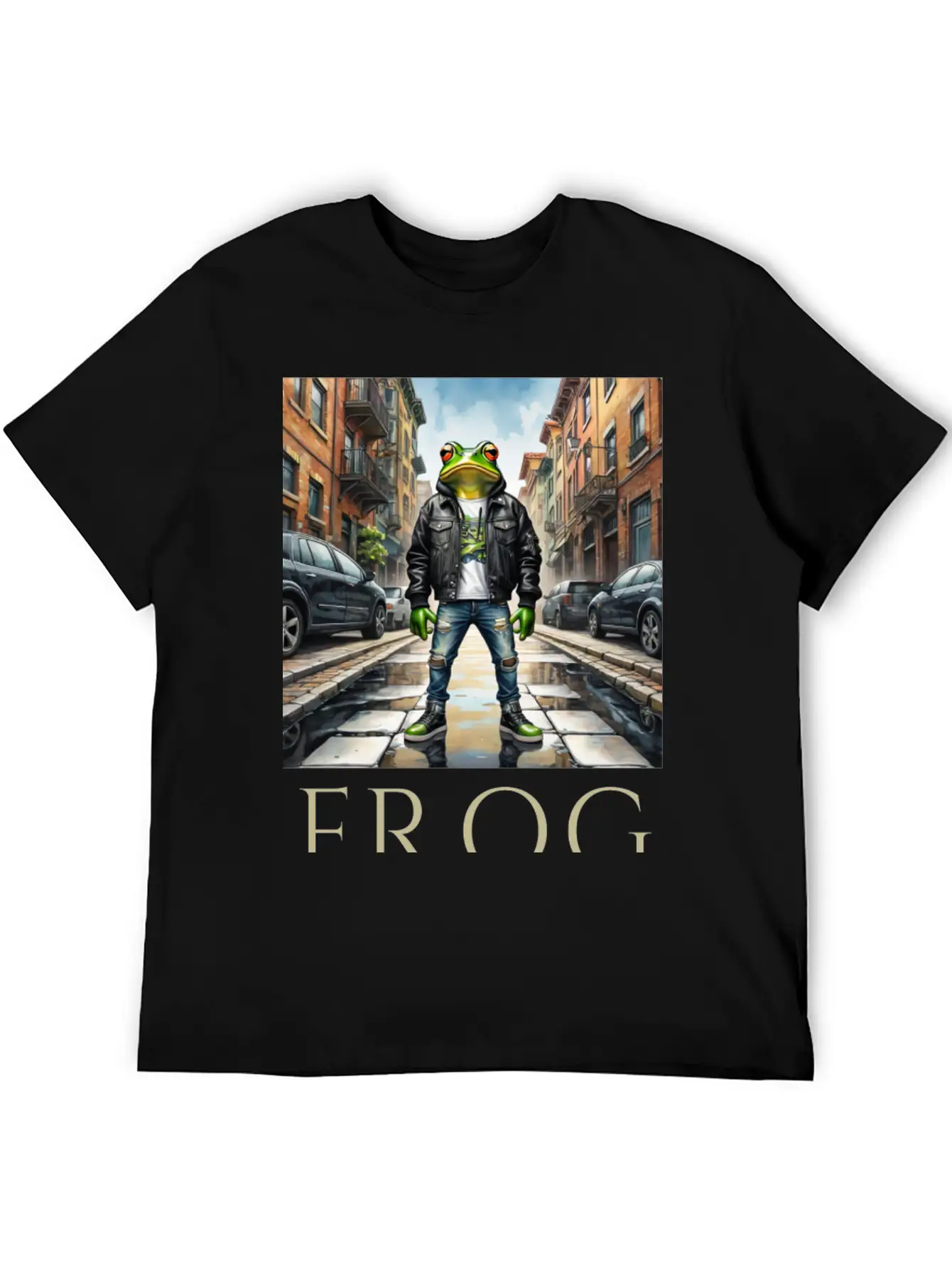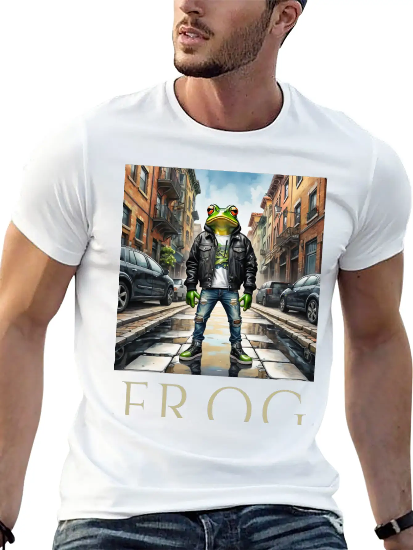 Urban Frog In Black Leather Jacket Classic Cotton Tee – Unisex Comfort For Any Season