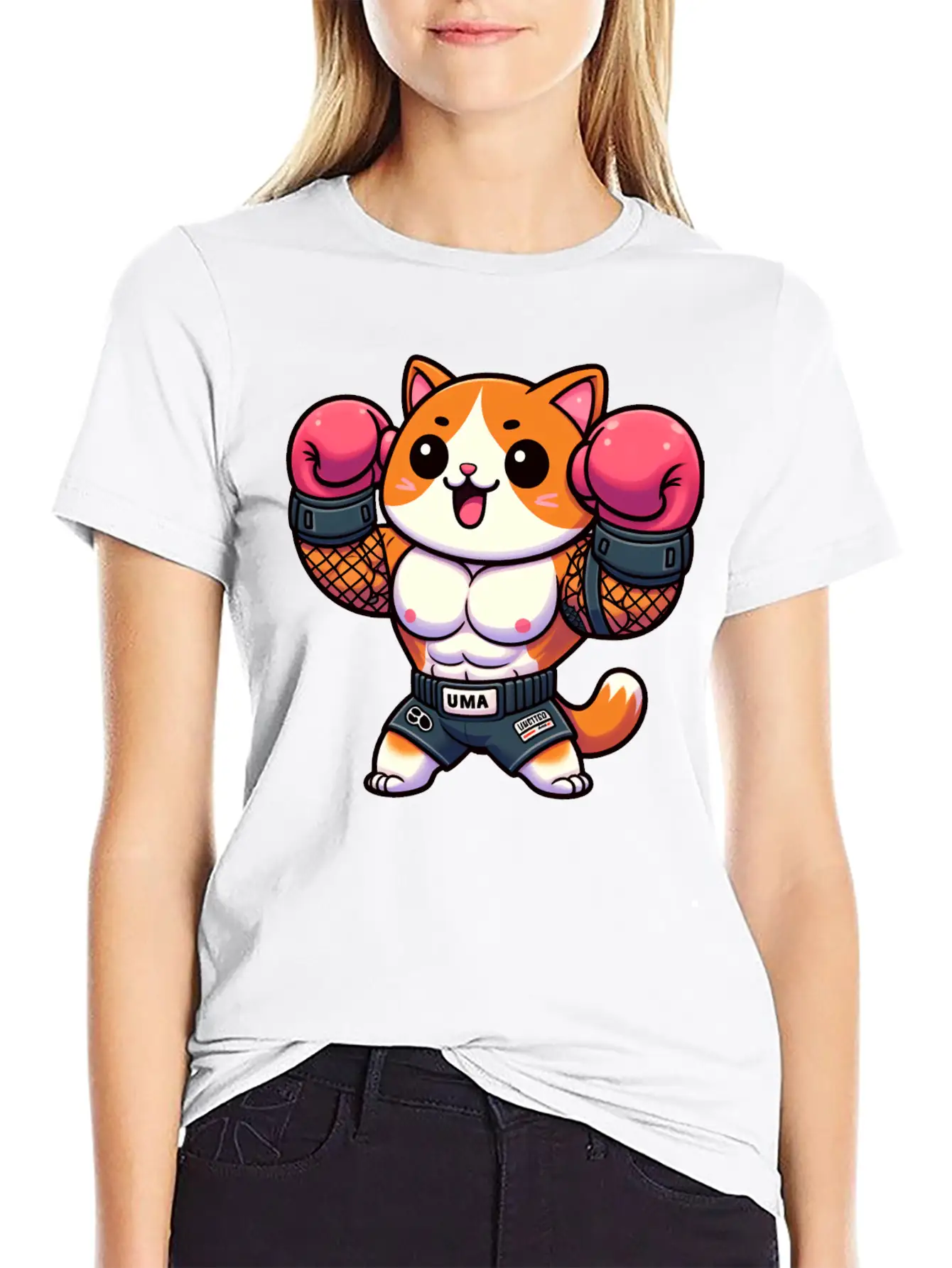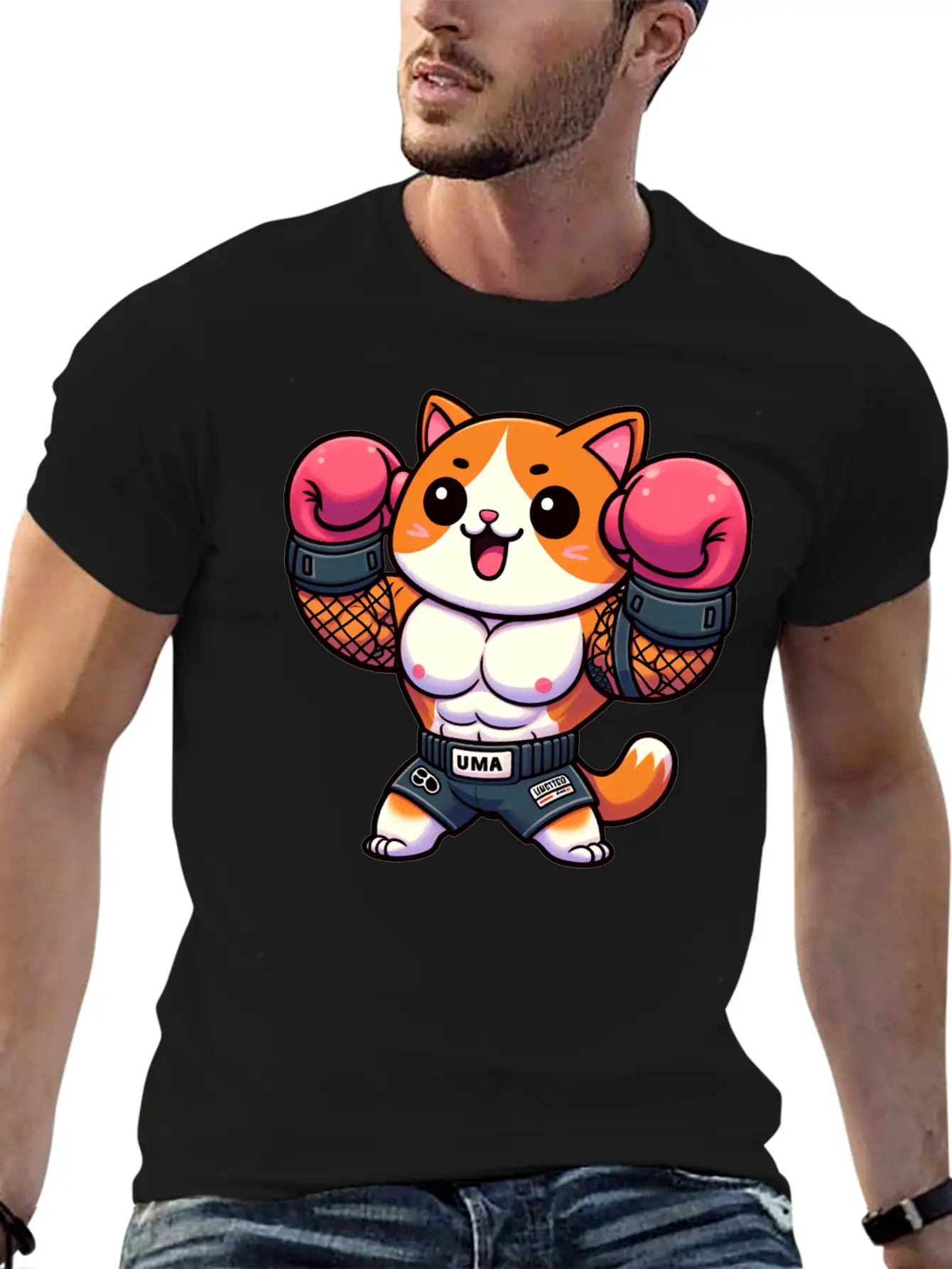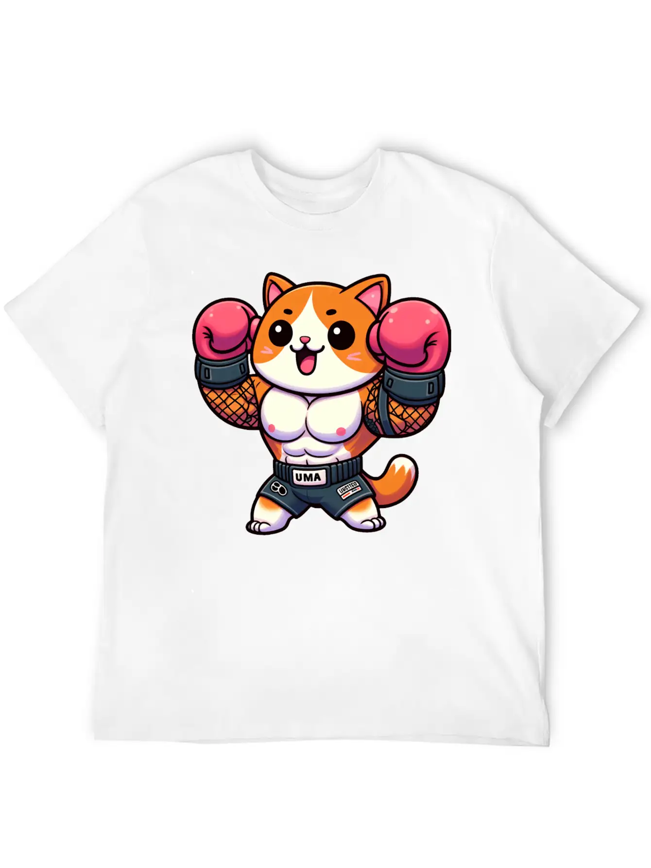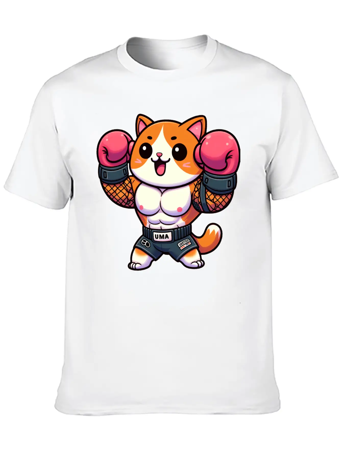 Victory Pose Ginger Boxing Cat Basic Graphic T-Shirt – Daily Comfort In Soft Cotton