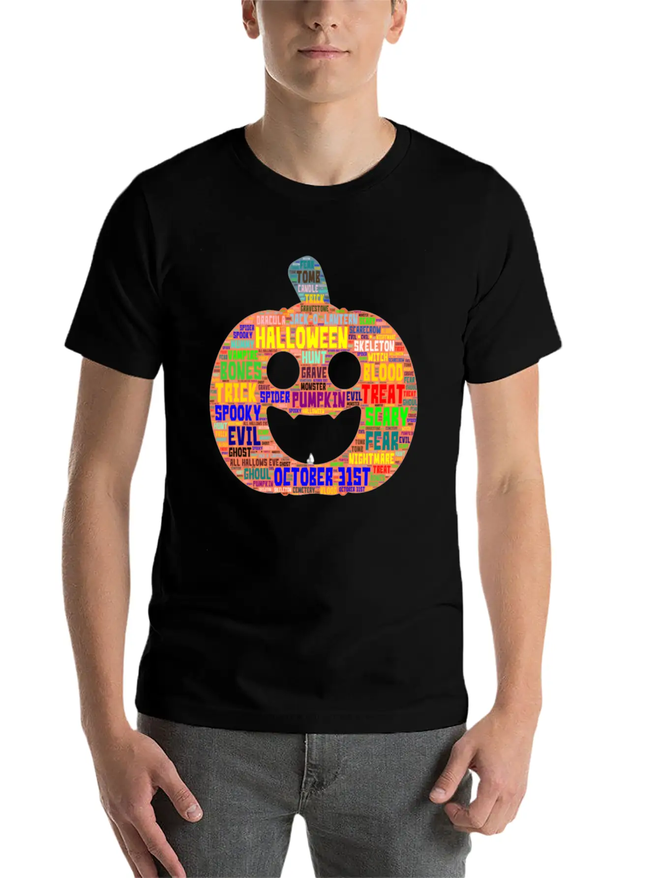 Word Art Halloween Beautiful Design Stylish Everyday T-Shirt – Unisex Basic Cotton Tee